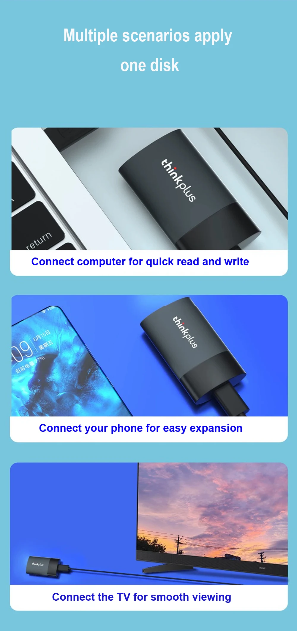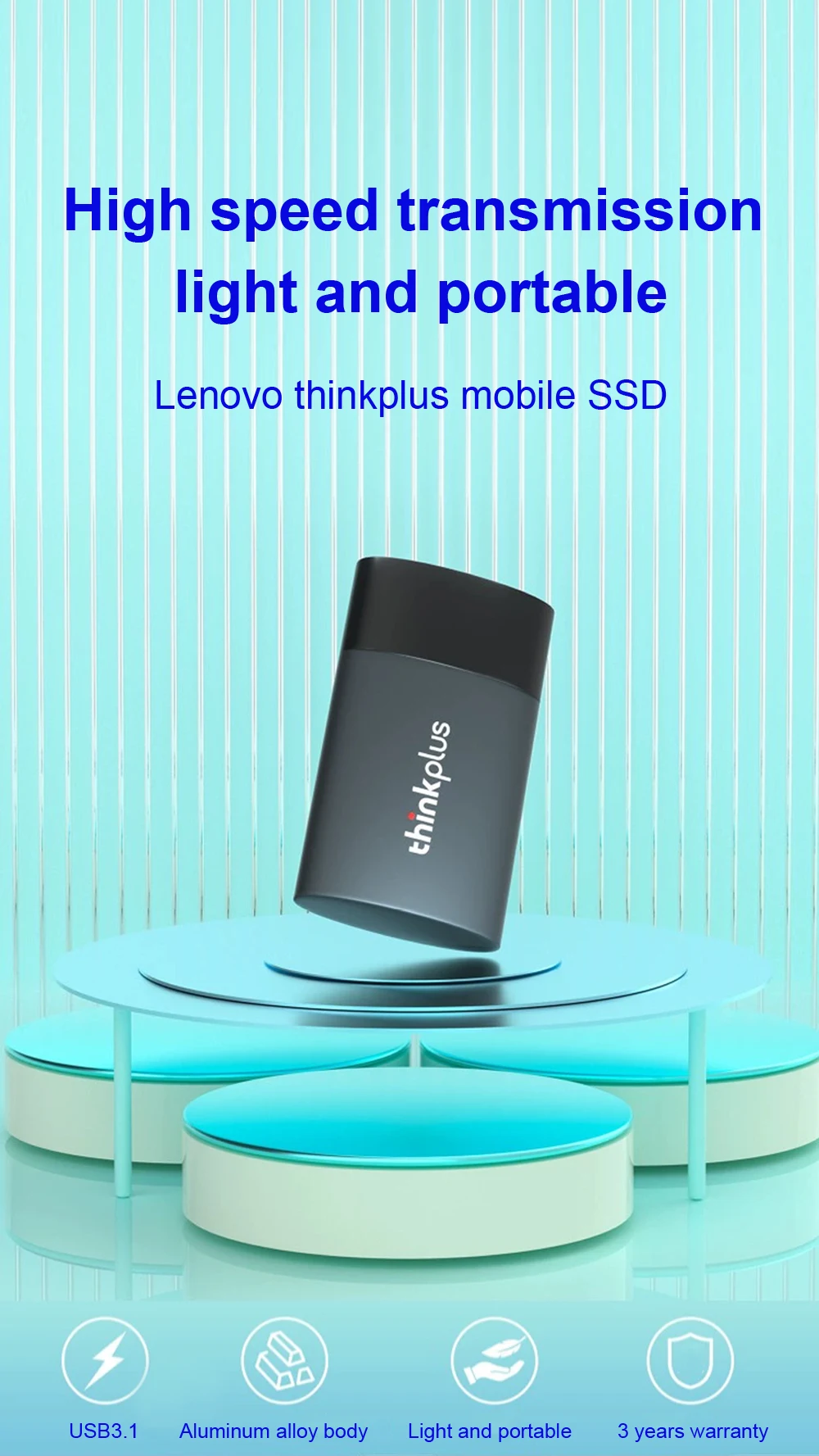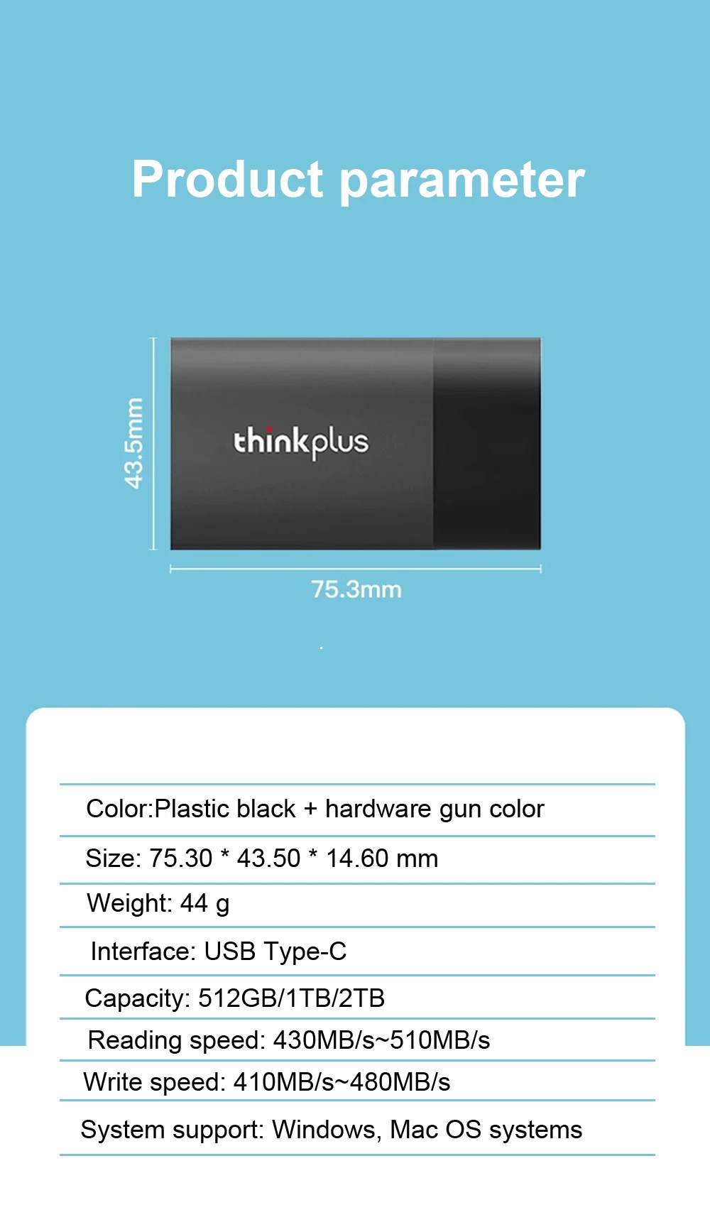 Comprar Lenovo-unidad de estado sólido thinkplus US202, SSD portátil de 512GB, 1TB, 2TB, USB 3,1, interfaz tipo C de alta velocidad, ordenador móvil externo