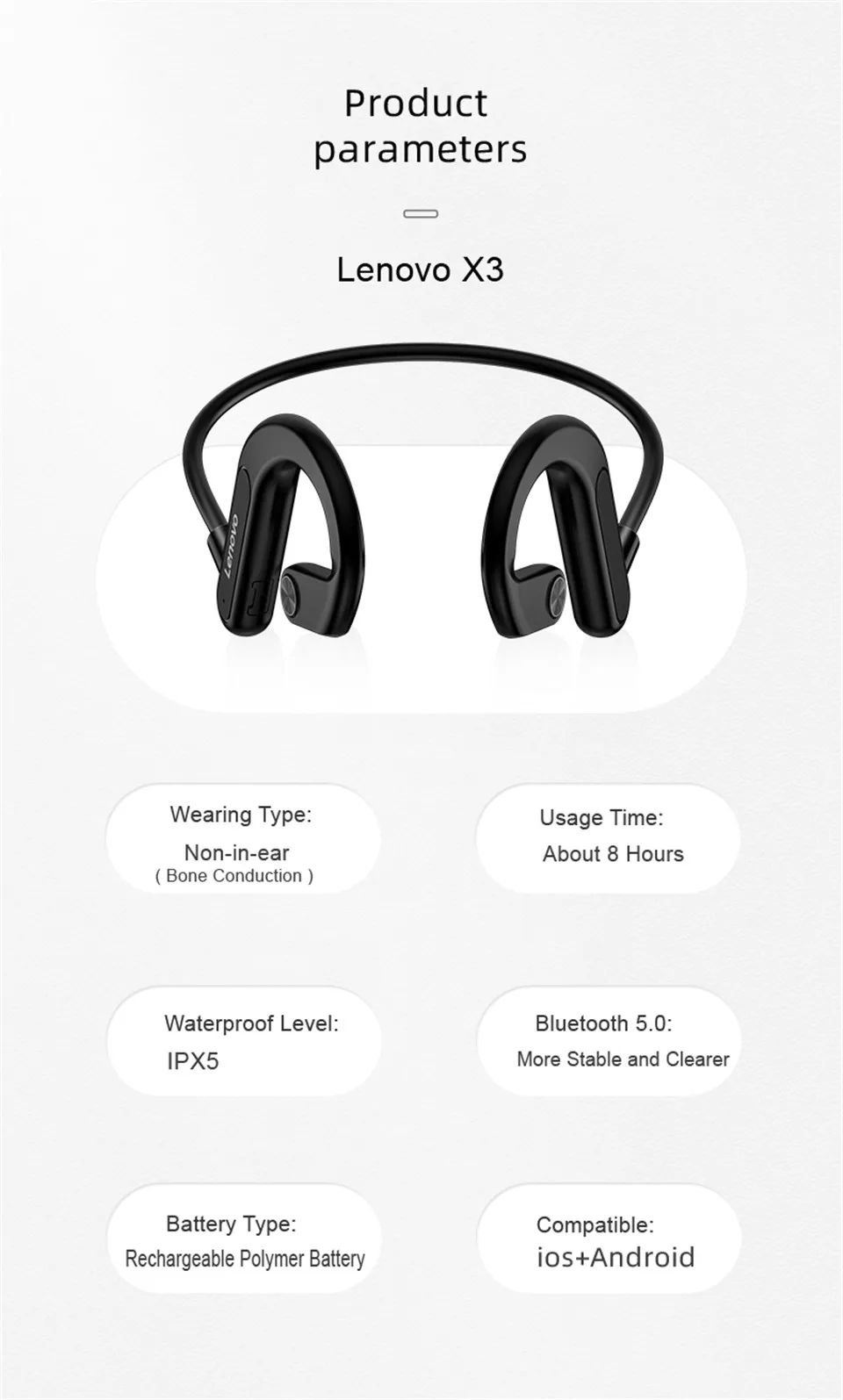 Lenovo X3 Pro Bone Conduction Earphones Bluetooth Hifi Ear-hook Wireless Headset With Mic Waterproof Earbud And X4 X5 headphones