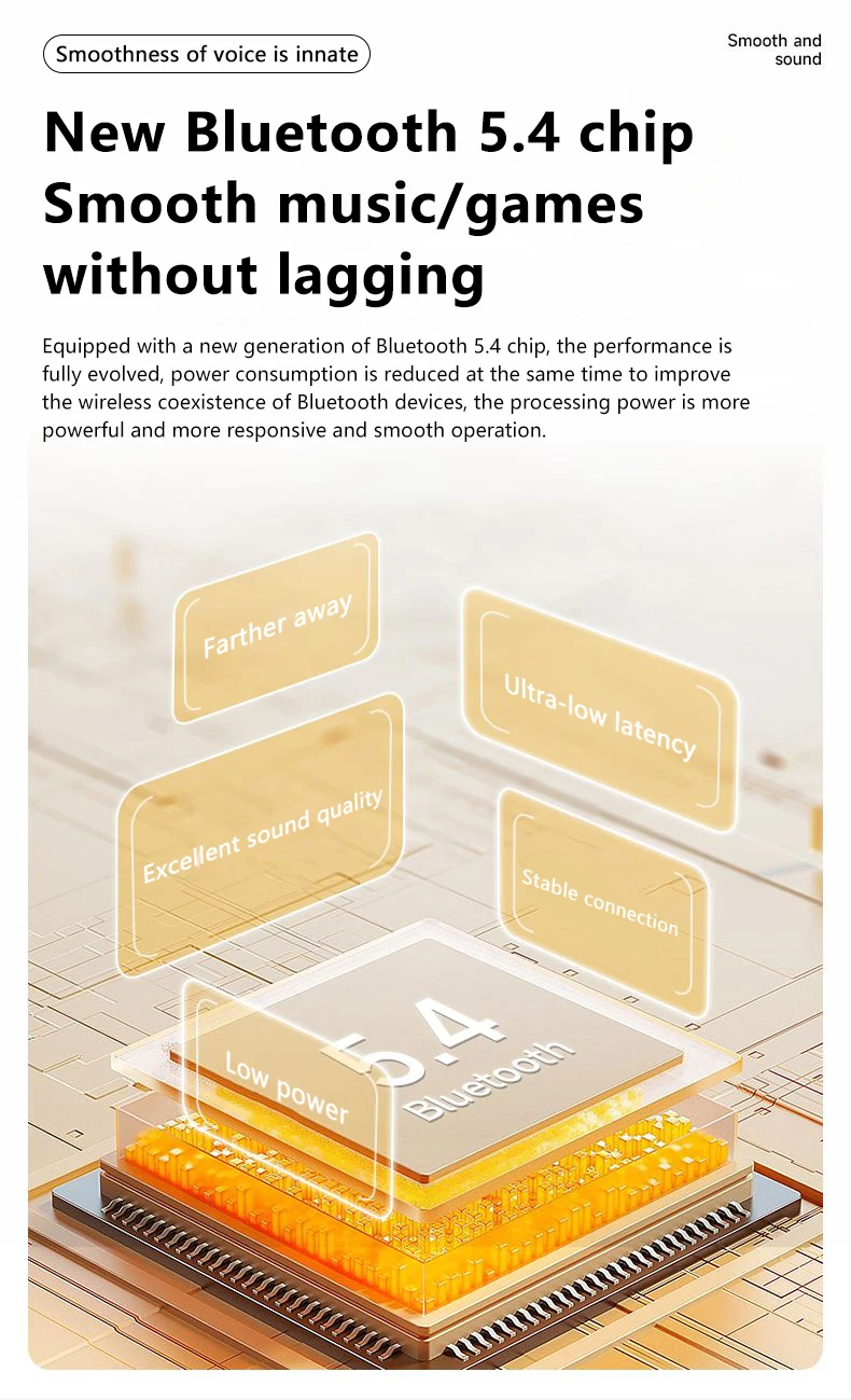 Con la tecnología inalámbrica 5 avanzada.4 chip, simplemente abra el estuche para conectarse, lo que garantiza un sonido e imagen sincronizados con latencia ultrabaja para una experiencia perfecta.La nueva generación de tecnología de alta velocidad aumenta la velocidad de transmisión en un 90%, lo que garantiza una experiencia más fluida.