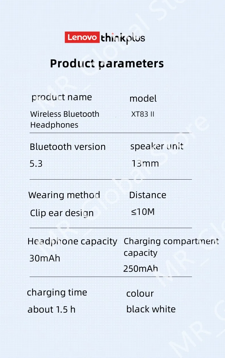 Comprar Lenovo XT83 II TWS auriculares inalámbricos Bluetooth 5,3 auriculares diseño de clip Control táctil HD auriculares de voz auriculares deportivos 2023