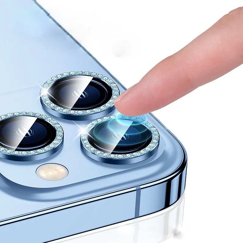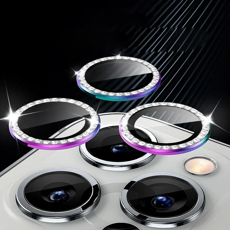 2-3 uds lente de cámara con diamantes de imitación para IPhone 14 15 13 16 17 Pro Max 13mini lente de anillo de Metal con brillo de diamante para IPhone 15 Plus