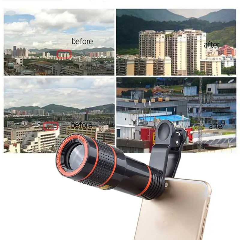 Comprar Lente de cámara de telescopio Universal con Zoom óptico 12x, accesorio para teléfono móvil IPhone 4S 6S 7, Clip-on, 1 ud.