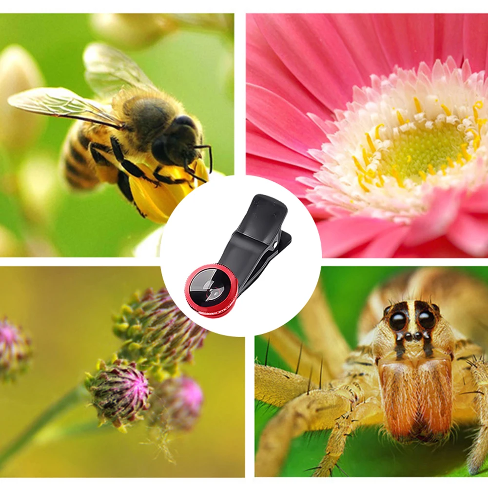 5. Perfecto para cualquier situación:El Kit de lentes del teléfono incluye una lente gran angular para capturar vistas expansivas, una lente ojo de pez para imágenes hemisféricas únicas y una lente macro para primeros planos detallados. Ya sea que esté fotografiando paisajes, grupos o sujetos pequeños, Este kit lo tiene cubierto.
