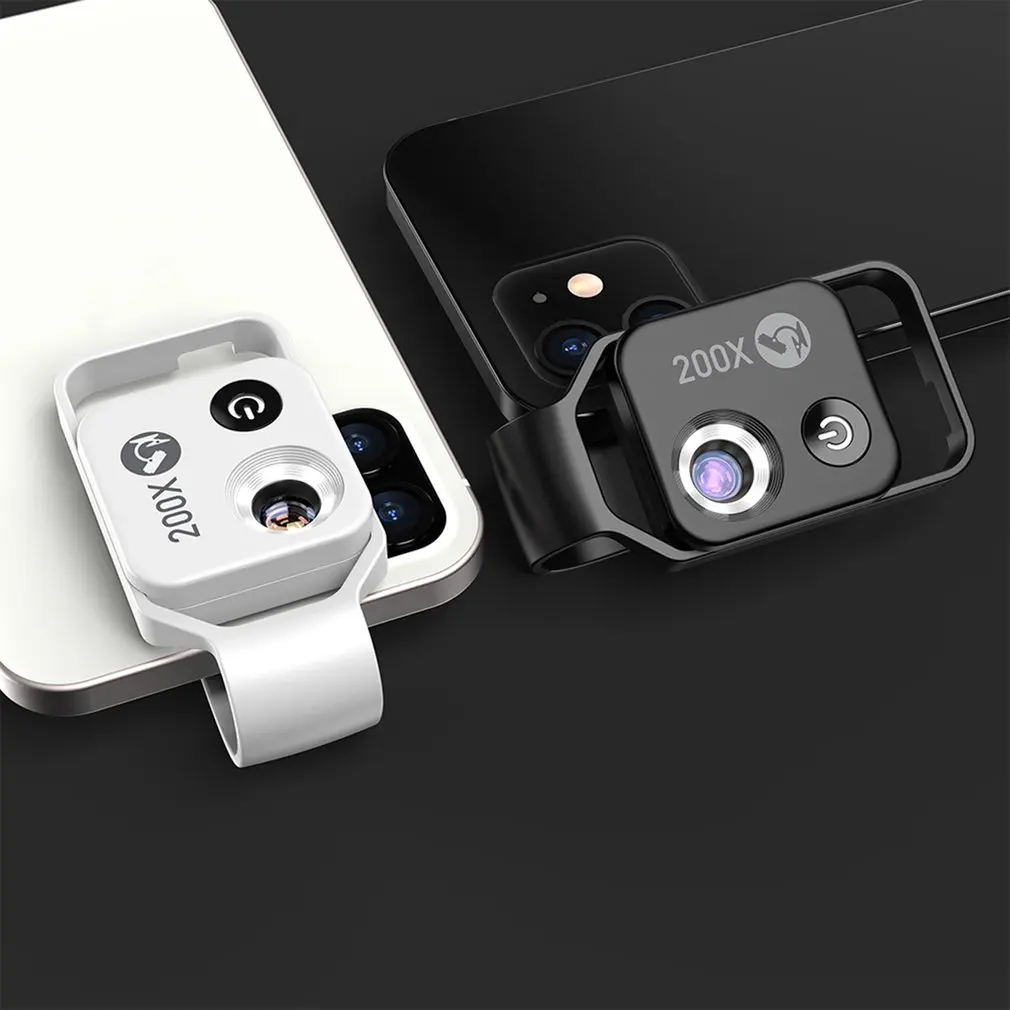 Lente de microscopio de aumento 200X con lente macro de micro bolsillo LED móvil CPL para iPhones todos los teléfonos inteligentes