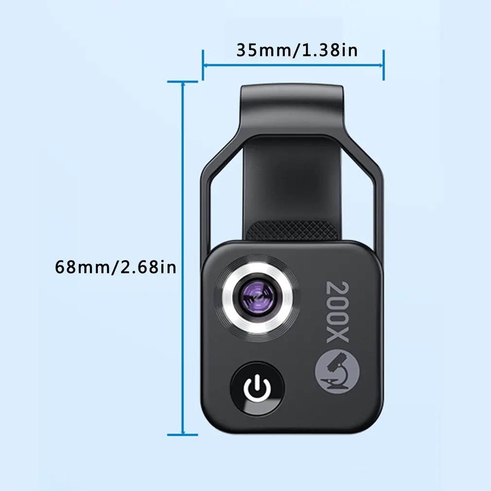 Lente de microscopio de aumento 200X con lente macro de micro bolsillo LED móvil CPL para iPhones todos los teléfonos inteligentes