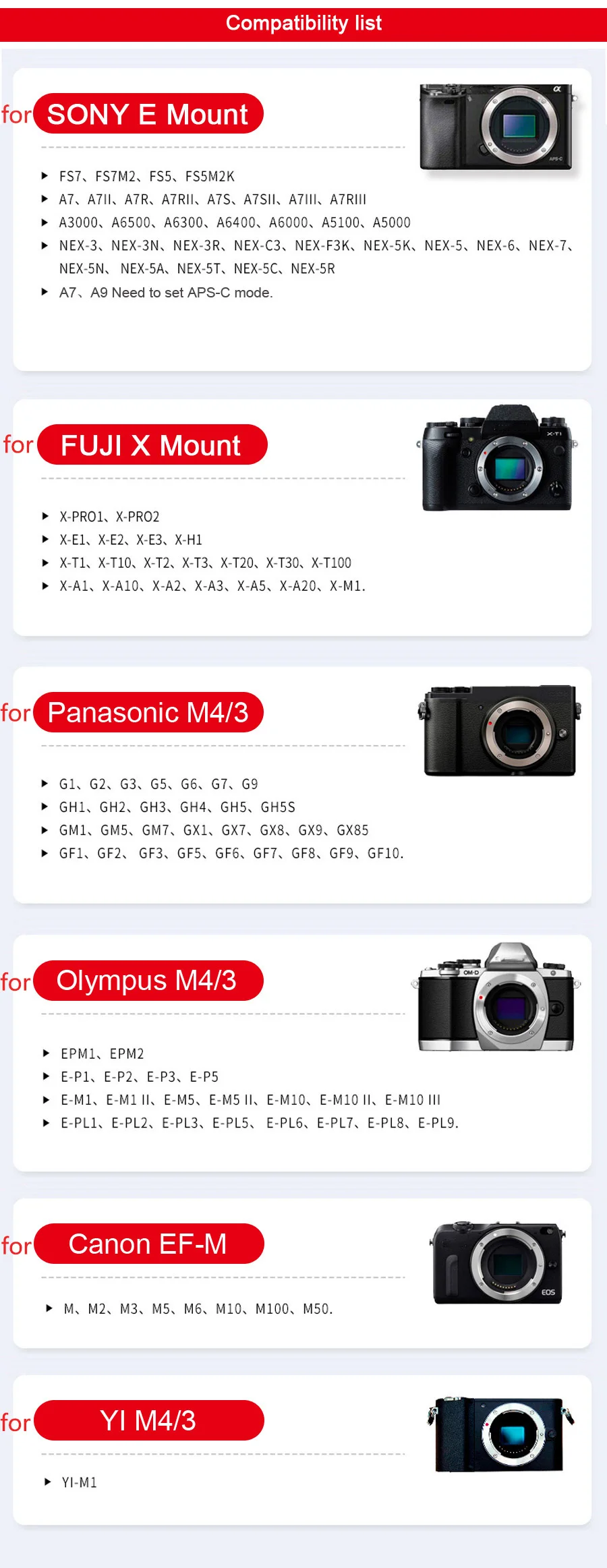 El tamaño compacto y el peso ligero lo convierten en el compañero perfecto para los sistemas de cámaras sin espejo.Los 4 elementos en el diseño óptico de 5 grupos proporcionan una gran nitidez en el centro y en las esquinas, incluso en f/1.8.El círculo de imagen cubre el tamaño del sensor APS-C y es adecuado para cámaras sin espejo con diferentes soportes.
