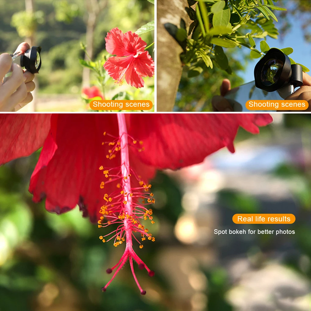Fácil de usar: Instale la lente, luego encienda la cámara en el teléfono, luego comience a tomar una hermosa foto de cerca.