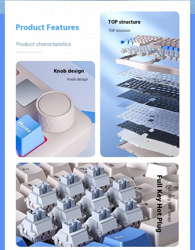 Comprar Leobog Alice A75 Kit de teclado mecánico 2,4G inalámbrico triple modo Gamer teclado ergonomía intercambio en caliente RGB Pc Gamer Accesorios