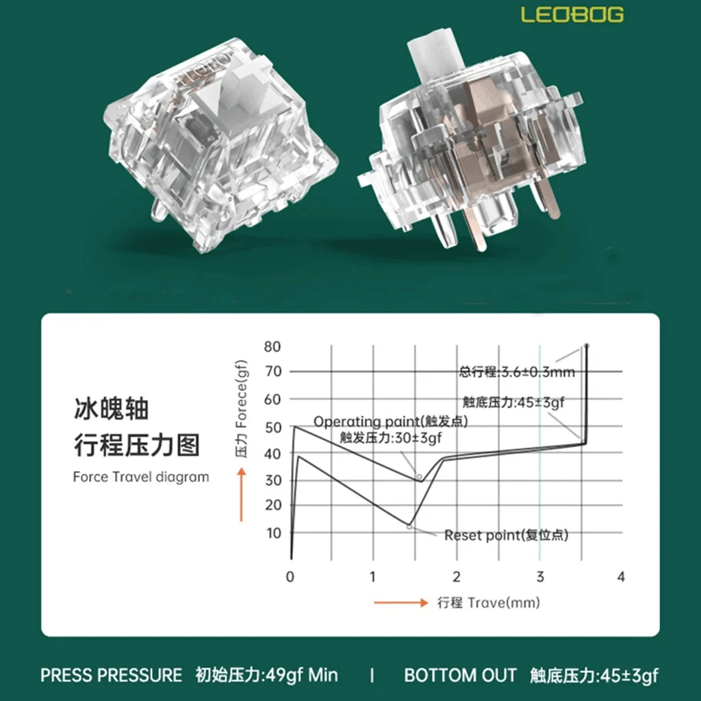 Mirando alrededor del mercado, hay muy pocos interruptores transparentes de tipo táctil. El interruptor Leobog Icesoul pretende satisfacer las necesidades. Como su nombre, el interruptor Icesoul está diseñado para ser transparente. Con carcasas de PC transparentes, este interruptor es perfecto para aquellos que están interesados en los teclados con brillo. Los interruptores Icesoul están diseñados con una fuerza de actuación de la luz de 30g. Son perfectos para jugadores y mecanógrafos que necesitan trabajar con el teclado durante mucho tiempo.