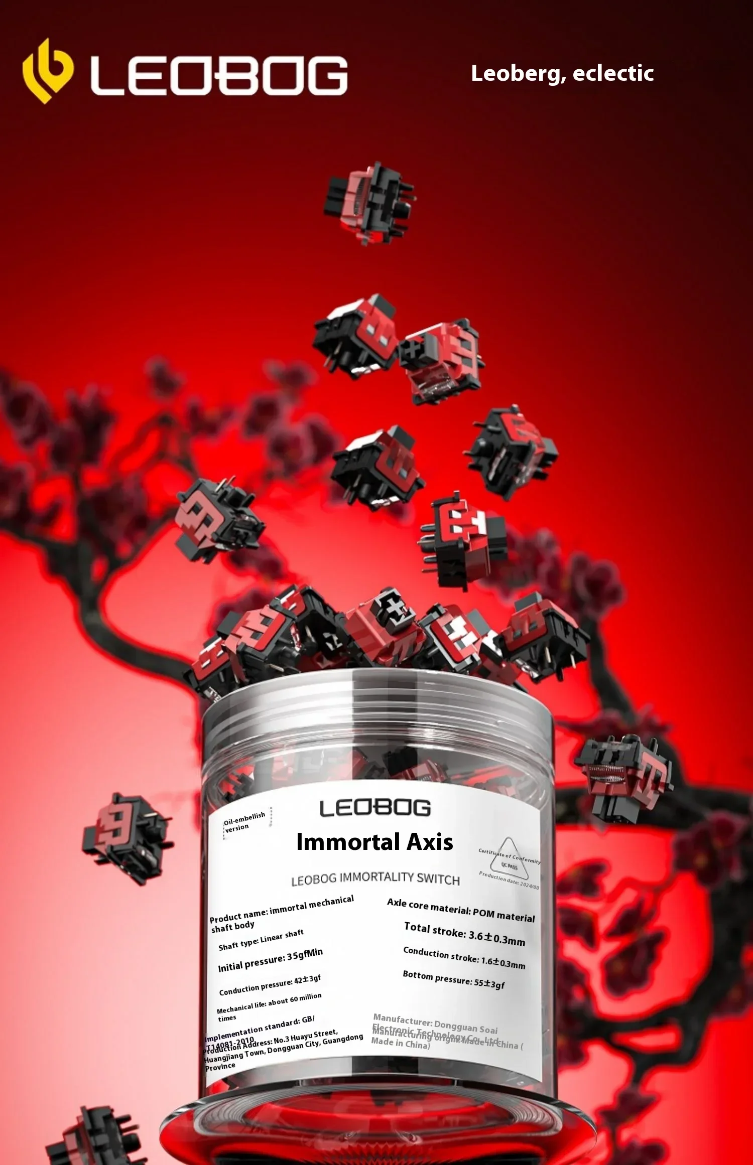 LEOBOG-interruptor de inmortalidad para Gamer, Teclado mecánico, interruptor lineal de alta fidelidad personalizado para Material Hi75/Hi8 POM, accesorios de interruptor de 5 pines