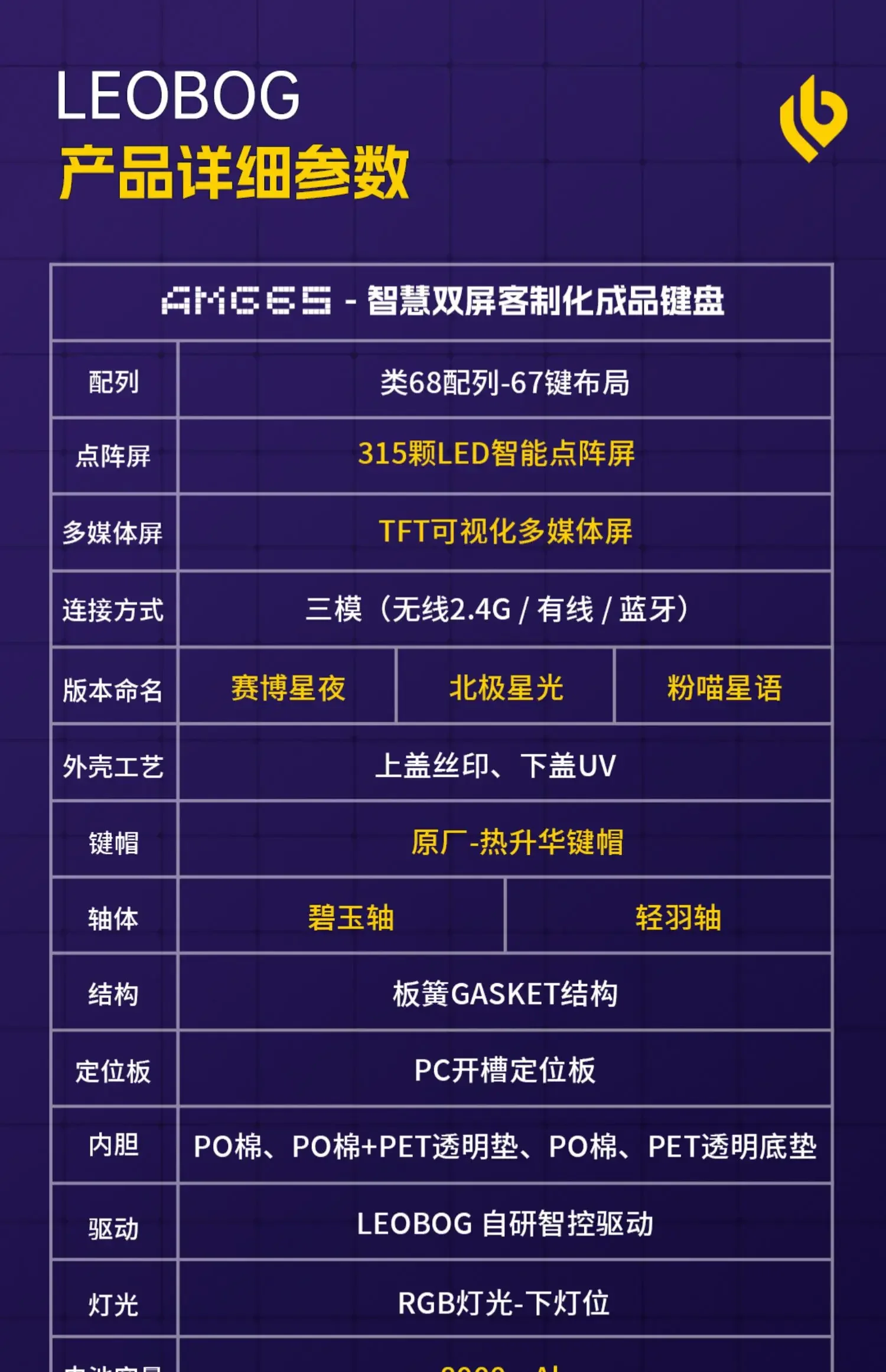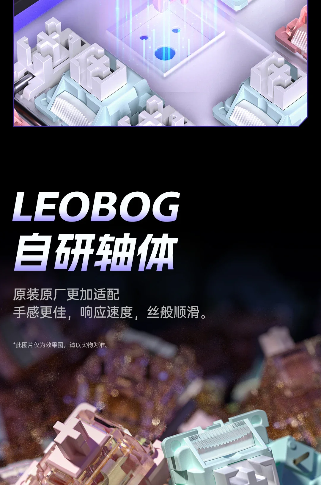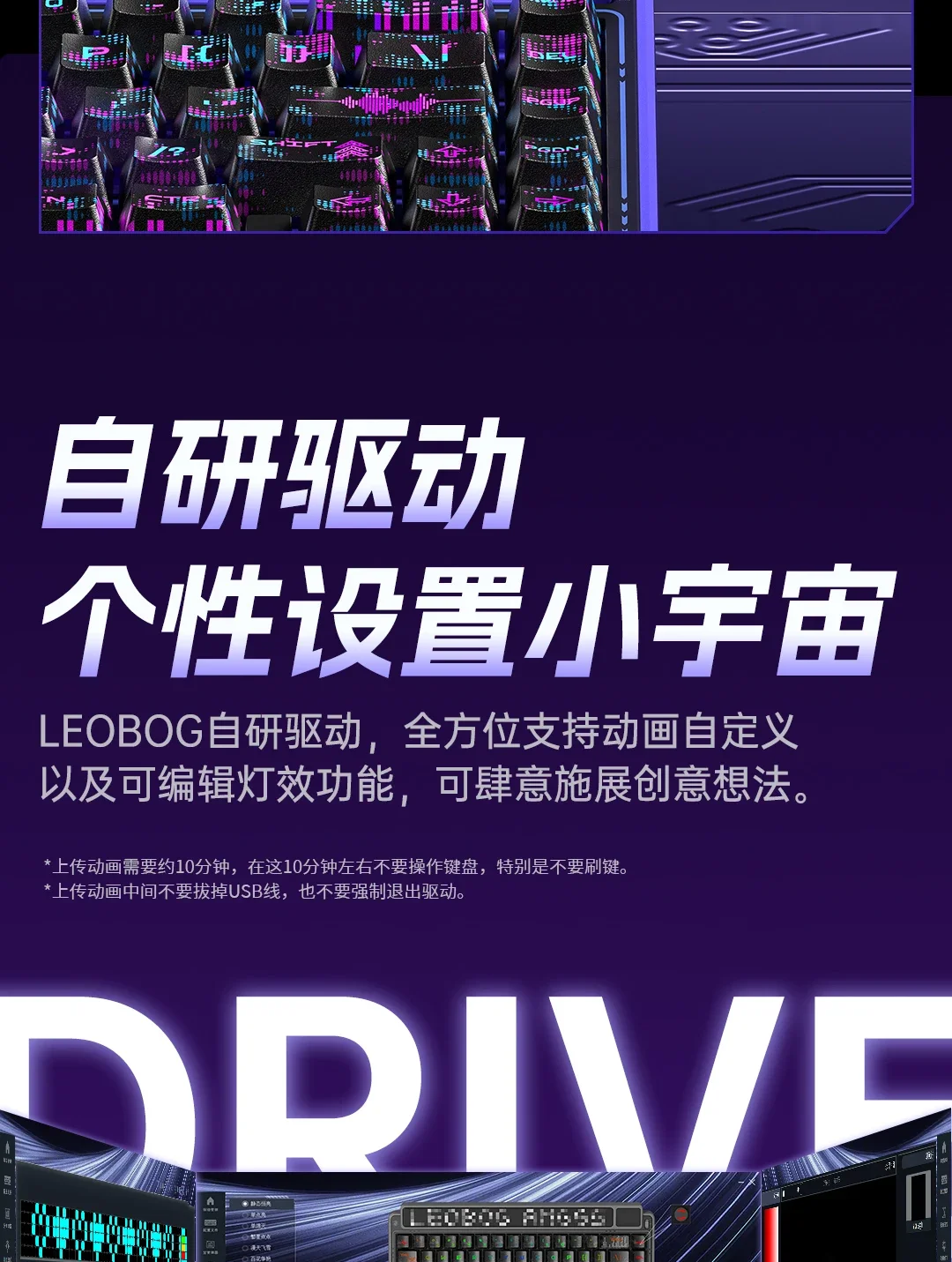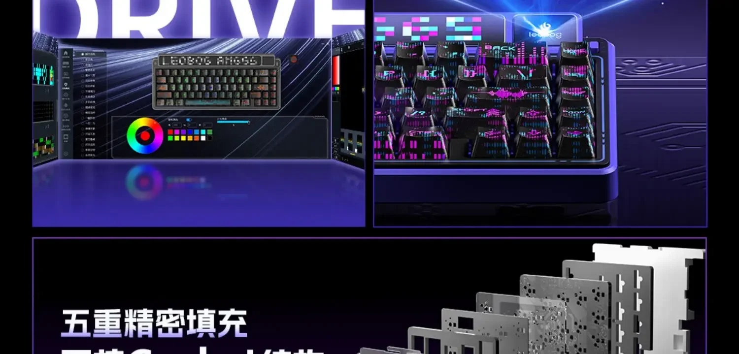 Controlador de desarrollo propio: el controlador patentado de LEOBOG admite la personalización de profundidad.Permite la reasignación de claves, la programación macro y el ajuste detallado de los efectos de luz, desbloqueando posibilidades creativas para configuraciones personalizadas.
