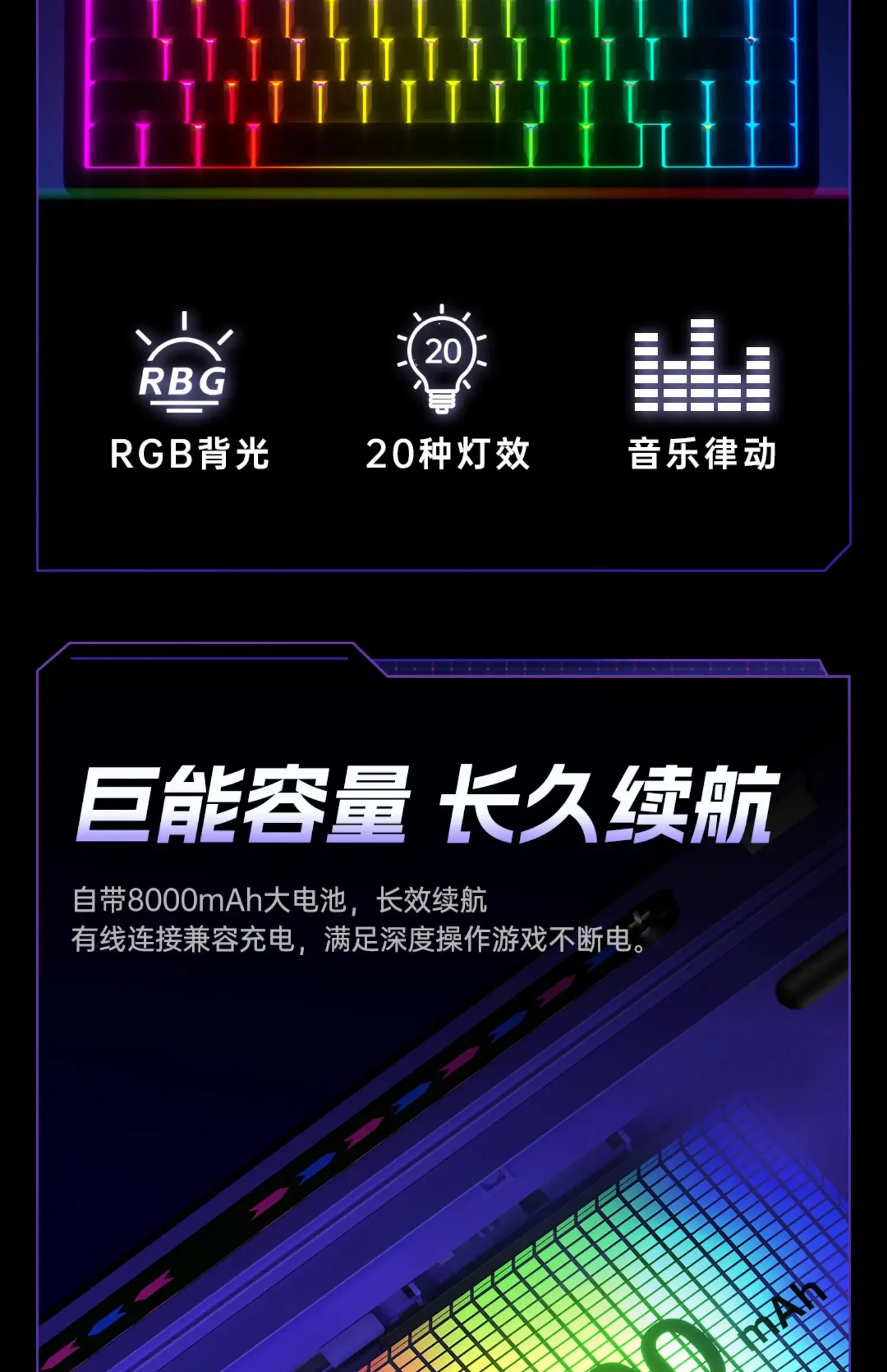 Conexión en modo triple: admite conexiones inalámbricas, Bluetooth y cableadas (Tipo C) de 2,4G.Permite cambiar sin problemas entre múltiples dispositivos (conectando más de 4 dispositivos simultáneamente), compatible con Windows, Android, HarmonyOS, macOS, iOS para un uso amplio.