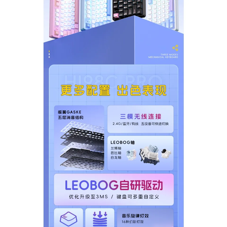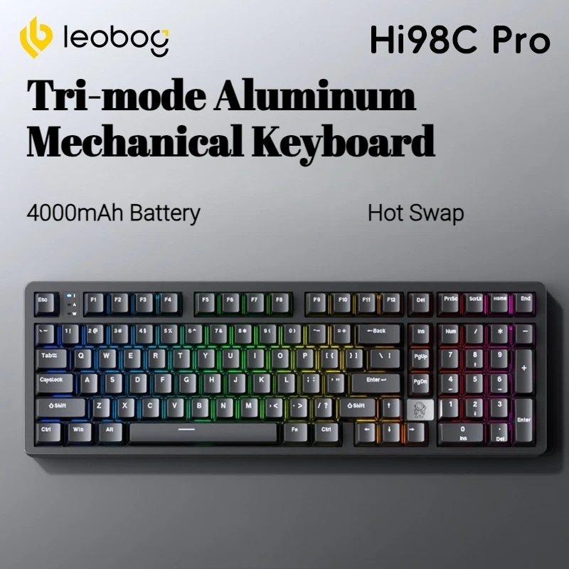 Comprar LEOBOG-Teclado mecánico Hi98C Pro, inalámbrico, trimodal, Bluetooth, intercambio en caliente, RGB, aluminio, personalizado, juegos de deportes electrónicos, accesorios de oficina