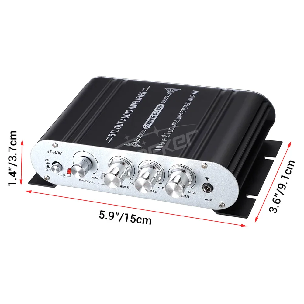 ✔ 2.1 canales con salida de 20 W × 2 (L/R) + 40 W (sub), puede controlar la mayoría de los parlantes pasivos y subwoofers de hogar/coche/barco/exterior con excelente sonido.