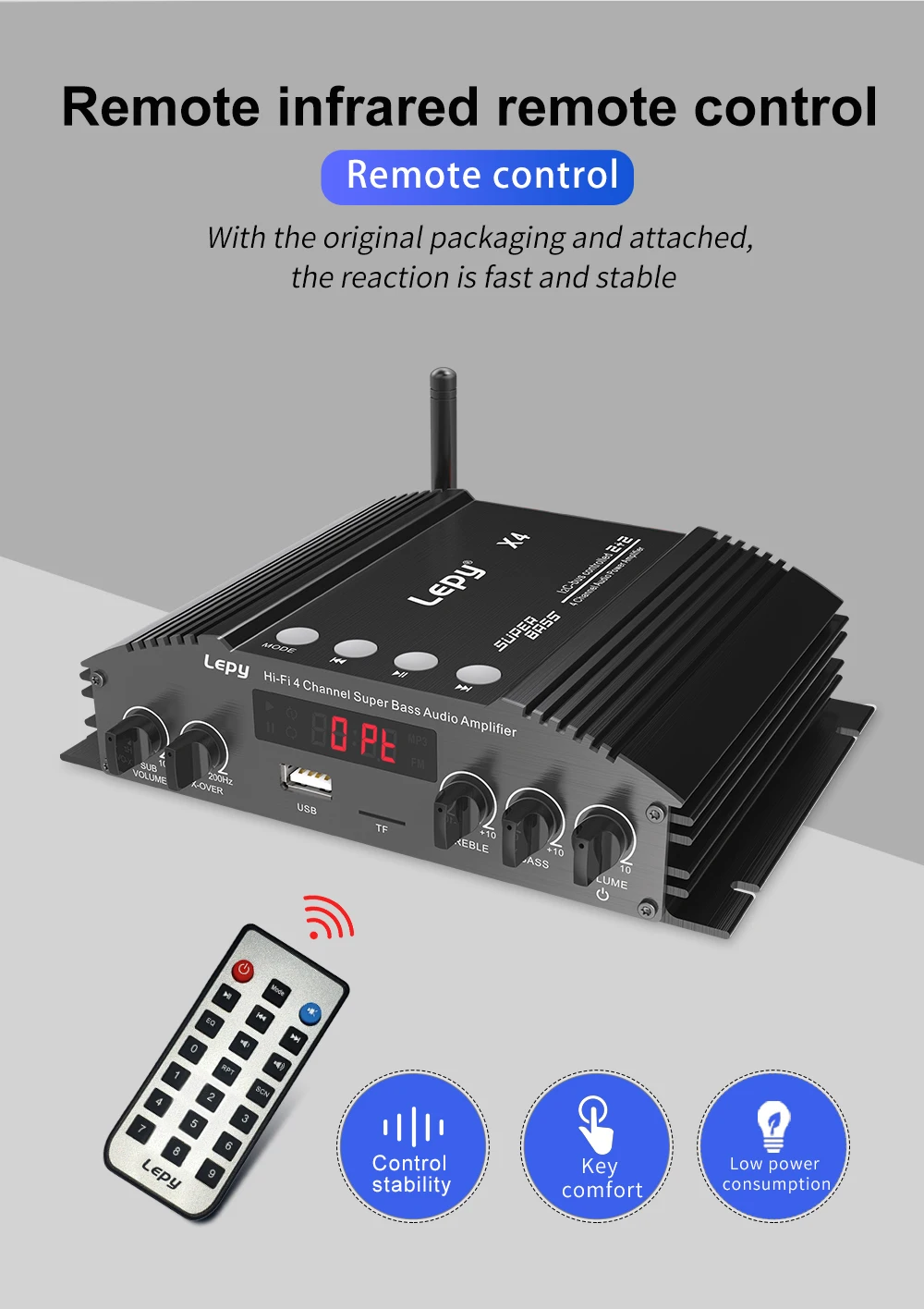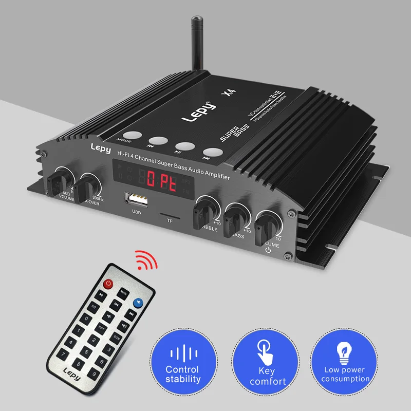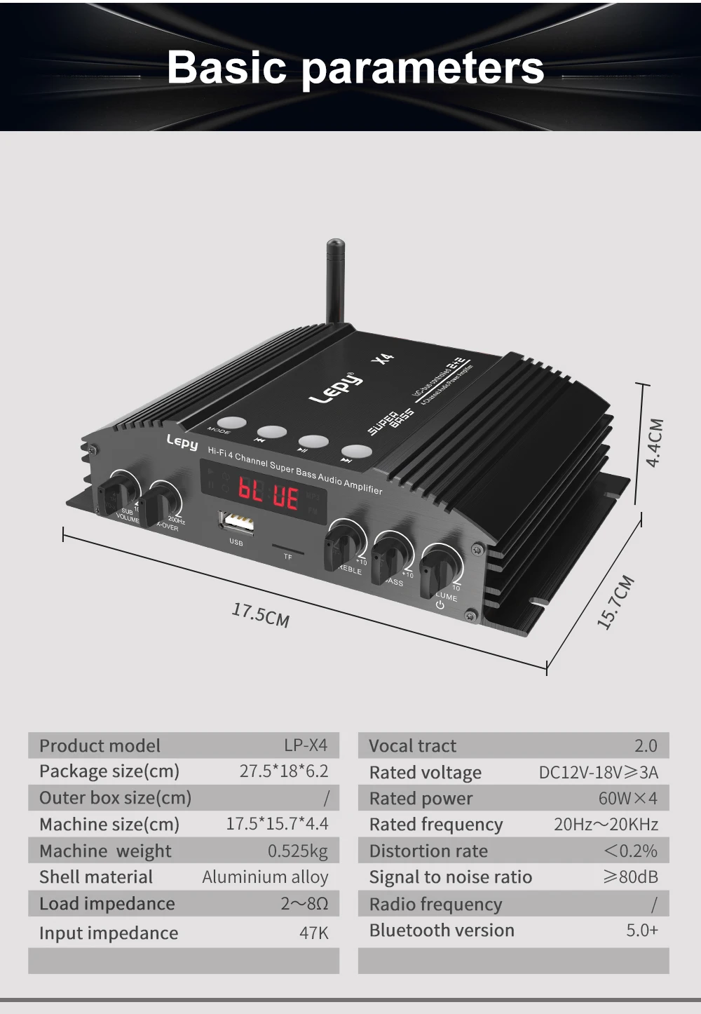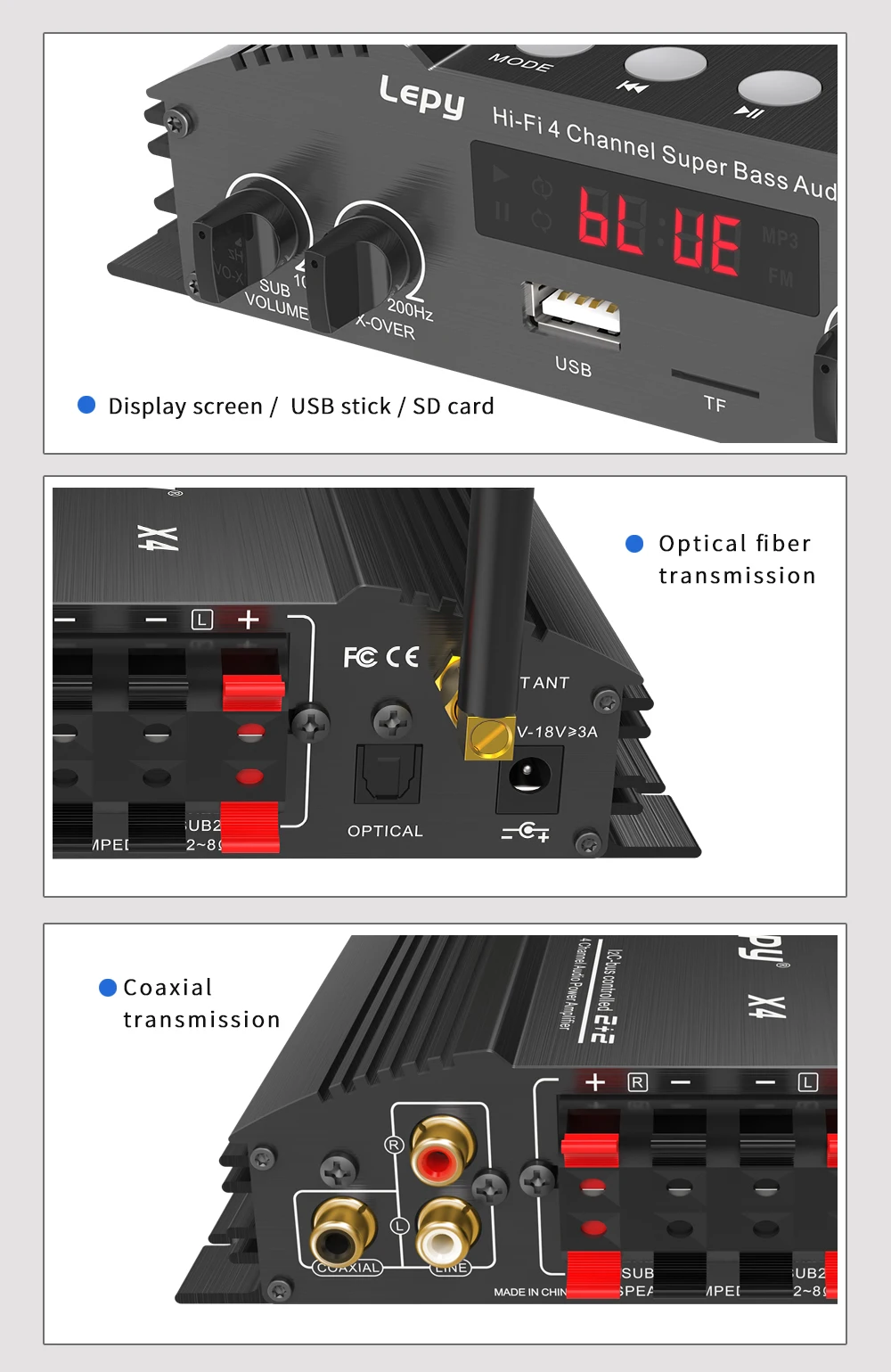 LEPY X4 HIFI 4 canales Bluetooth 5.0 amplificador de potencia, fibra óptica, entrada Coaxial, amplificador de Audio 2.1 salida de subwoofer doblePropiedades del producto: