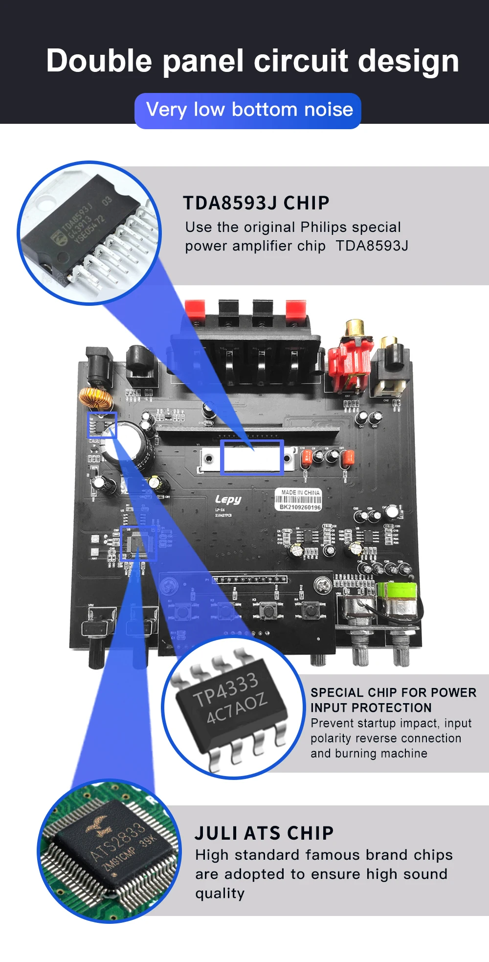 6.Adopta un chip importado de cuatro canales y está diseñado según el principio acústico científico y humanizado.