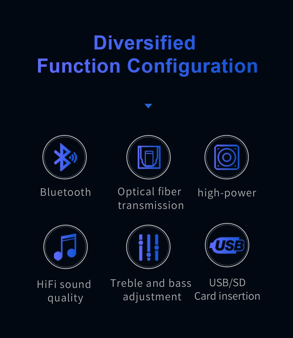 5.Altavoz de 2.0 canales a juego, o 2.1 canales (2,2 canales de graves dobles)