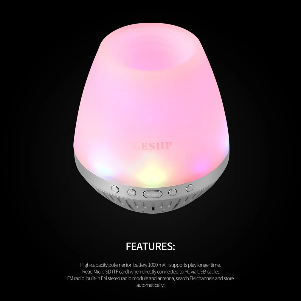Comprar LESHP-linterna LED inalámbrica Compatible con Bluetooth, minialtavoz portátil de escritorio, Compatible con tarjeta TF, USB, FM, 1000 MAH