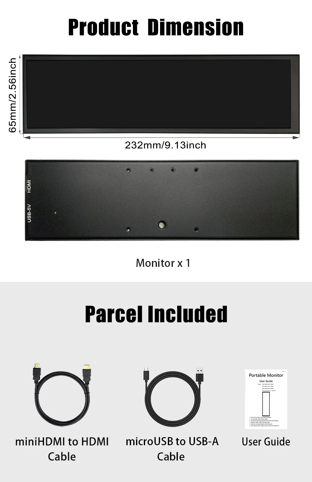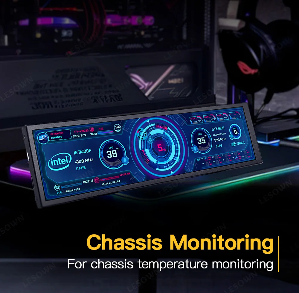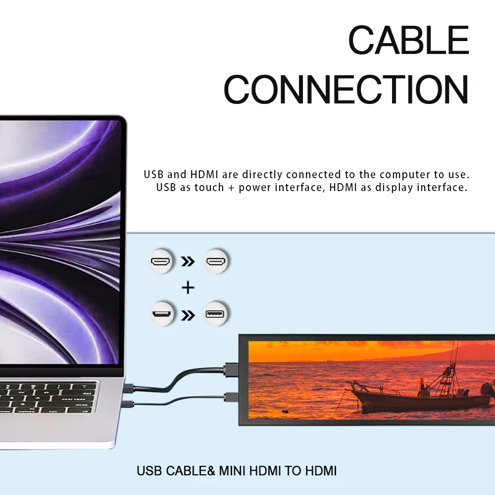 LESOWN 8,8 pulgadas IPS HDMI Monitor secundario barra estirada 1920x480 táctil mini pantalla LCD larga y ancha para Aida64 Windows PC
