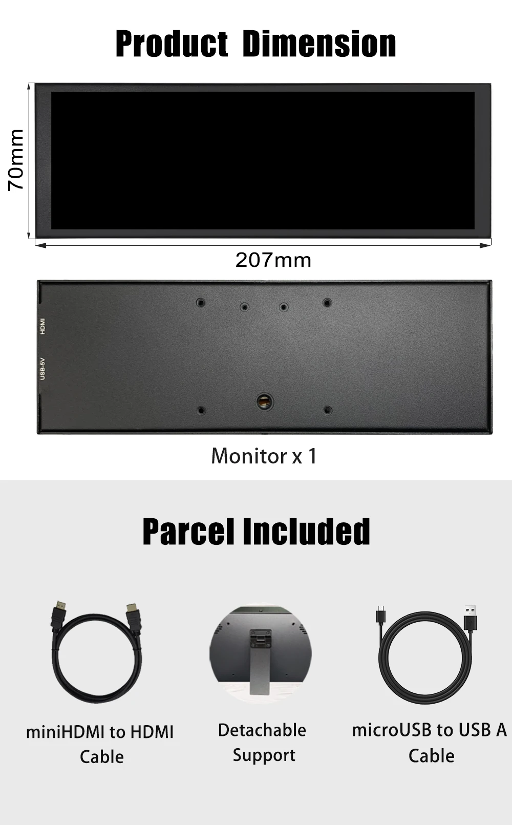 LESOWN Mini Monitor compacto 6,9 7,9 pulgadas 400x1280 IPS HDMI USB pantalla de viaje de panel lateral adicional para Windows 7/8/10 mac OS