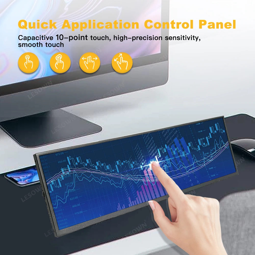 LESOWN-mini Pantalla de 2880x864, 12,7 pulgadas, 120Hz, 500Nits, IPS Touch, tira larga, tipo C, HDMI, Monitor 12,6, portátil