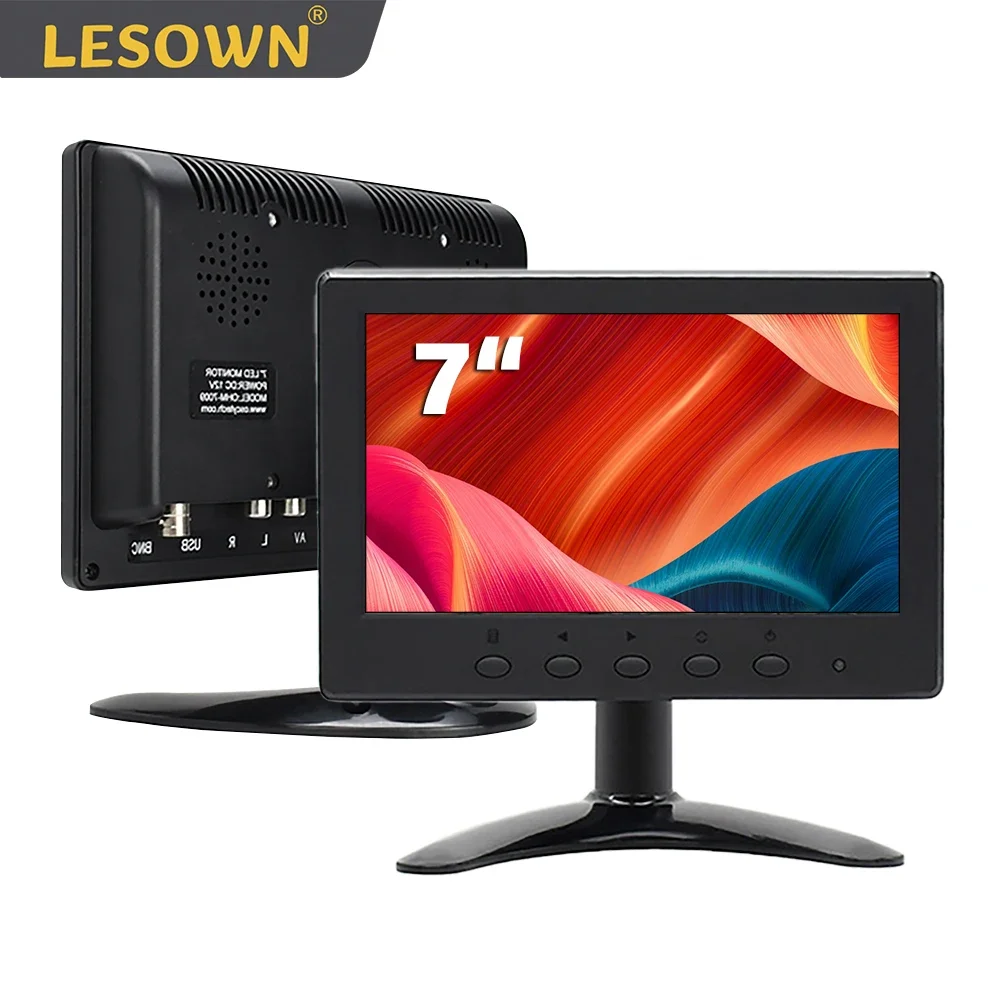 Comprar LESOWN-Monitor de 7 pulgadas para coche, pantalla pequeña Industrial con altavoces, resistente/capacitiva, 16:9, 1024x600 FHD, DC12V, 1A