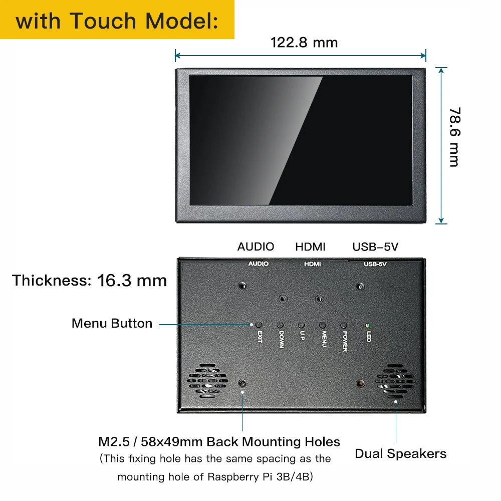 Monitor pequeño de 5 pulgadas con carcasa metálica, monitor ips de 800x480, pantalla LCD capacitiva, monitor de pantalla táctil