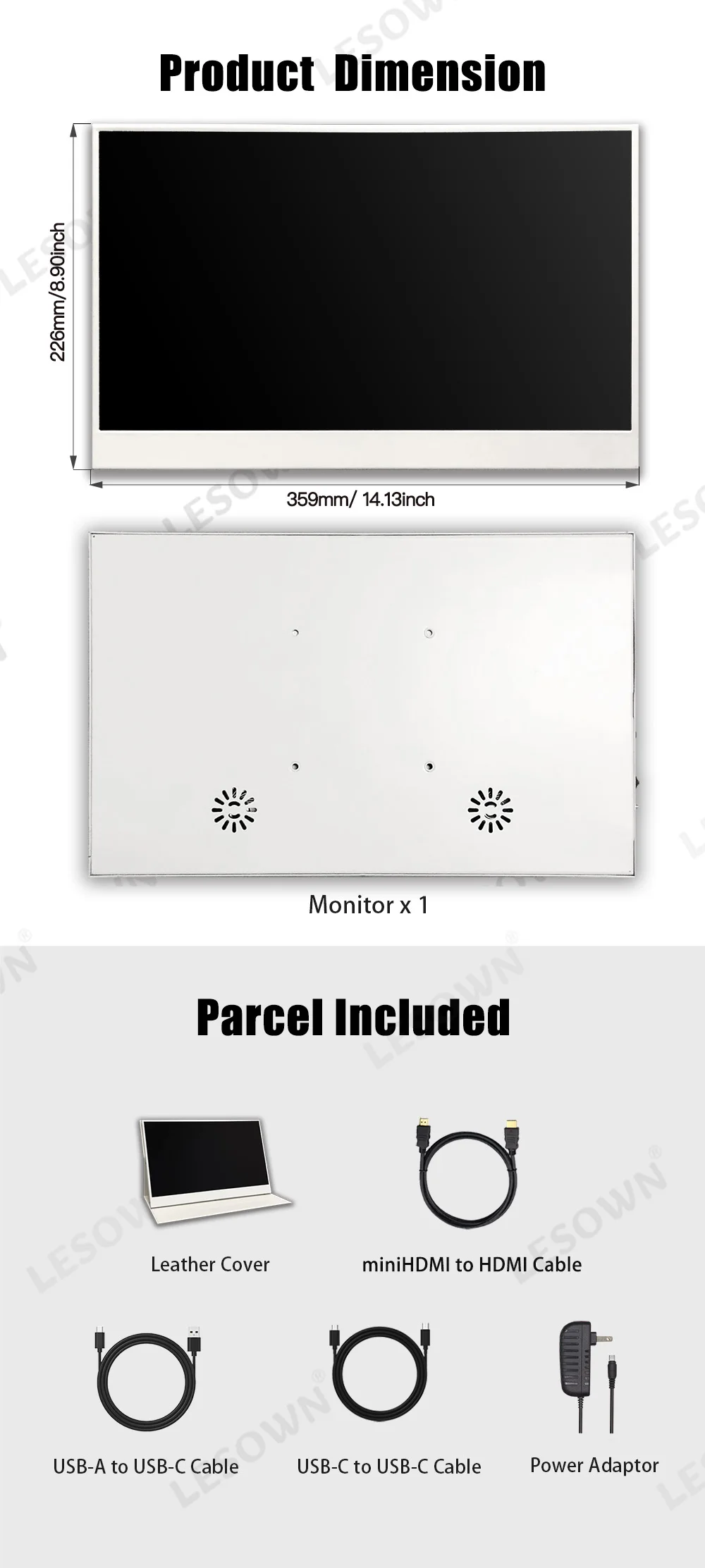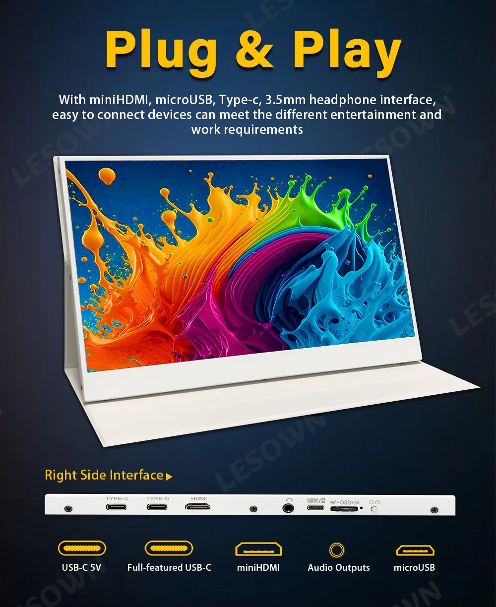 Comprar LESOWN-Monitor portátil Full HD 13,3x1920 IPS, pantalla táctil de 1080 pulgadas, HDMI, USB-C, 4K, IPS, auxiliar, altavoz incorporado, blanco