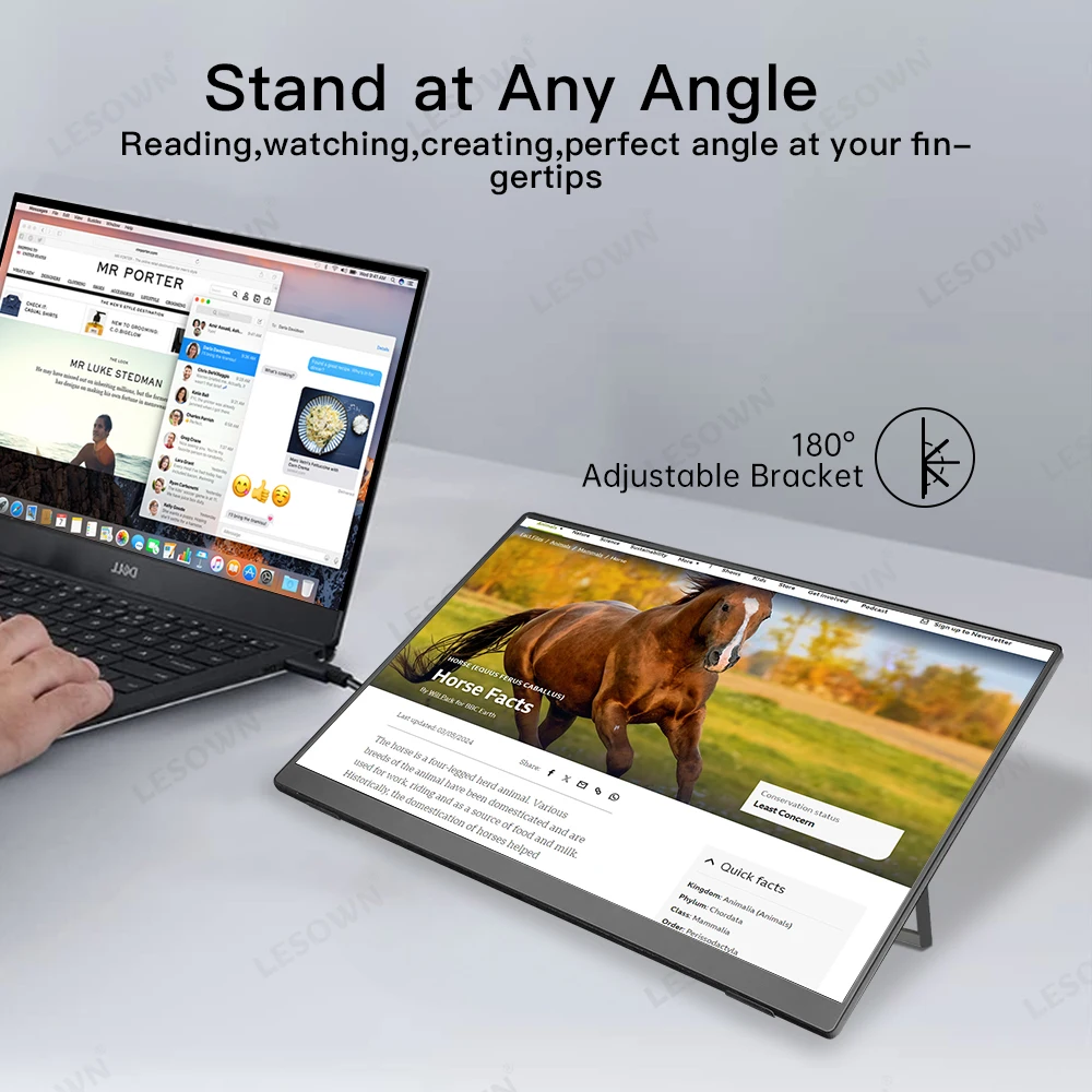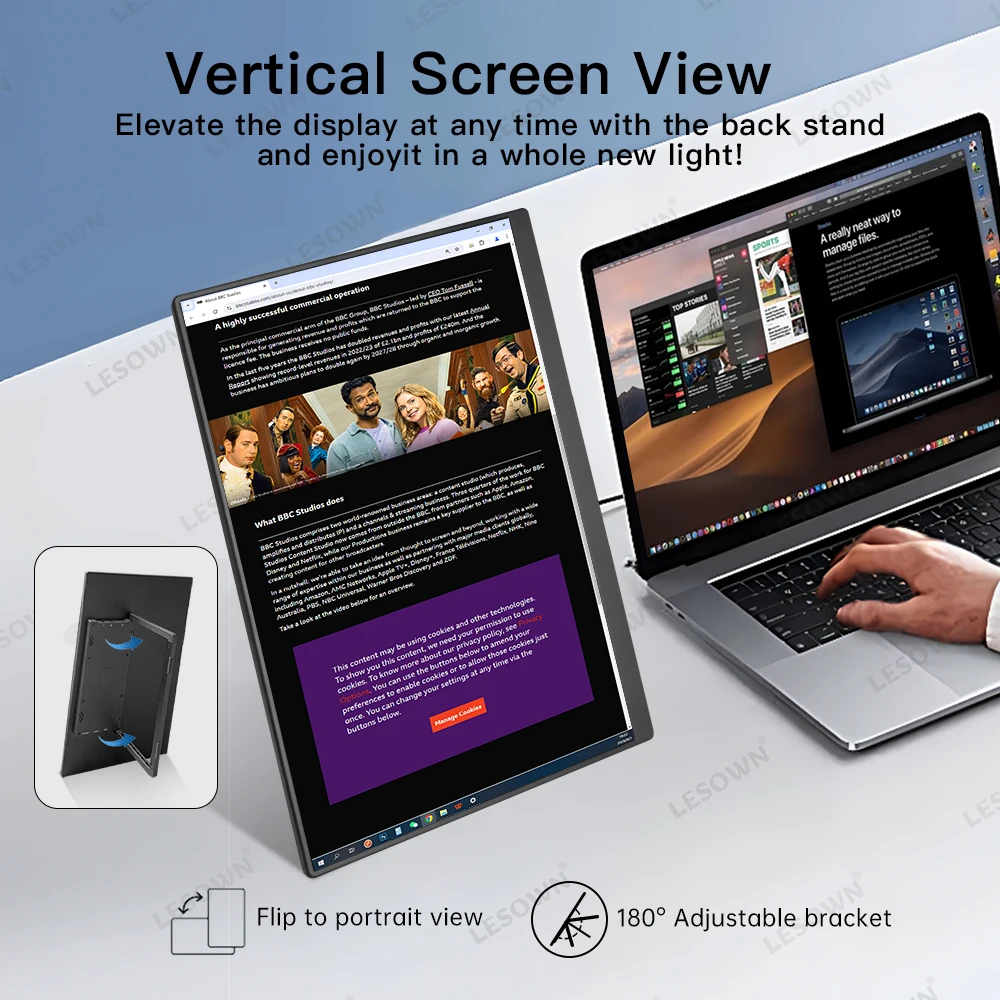 LESOWN Monitor portátil para juegos 120Hz 16 pulgadas USB C 2560x1600 pantalla externa ultradelgada con altavoces segunda pantalla para ordenador portátil
