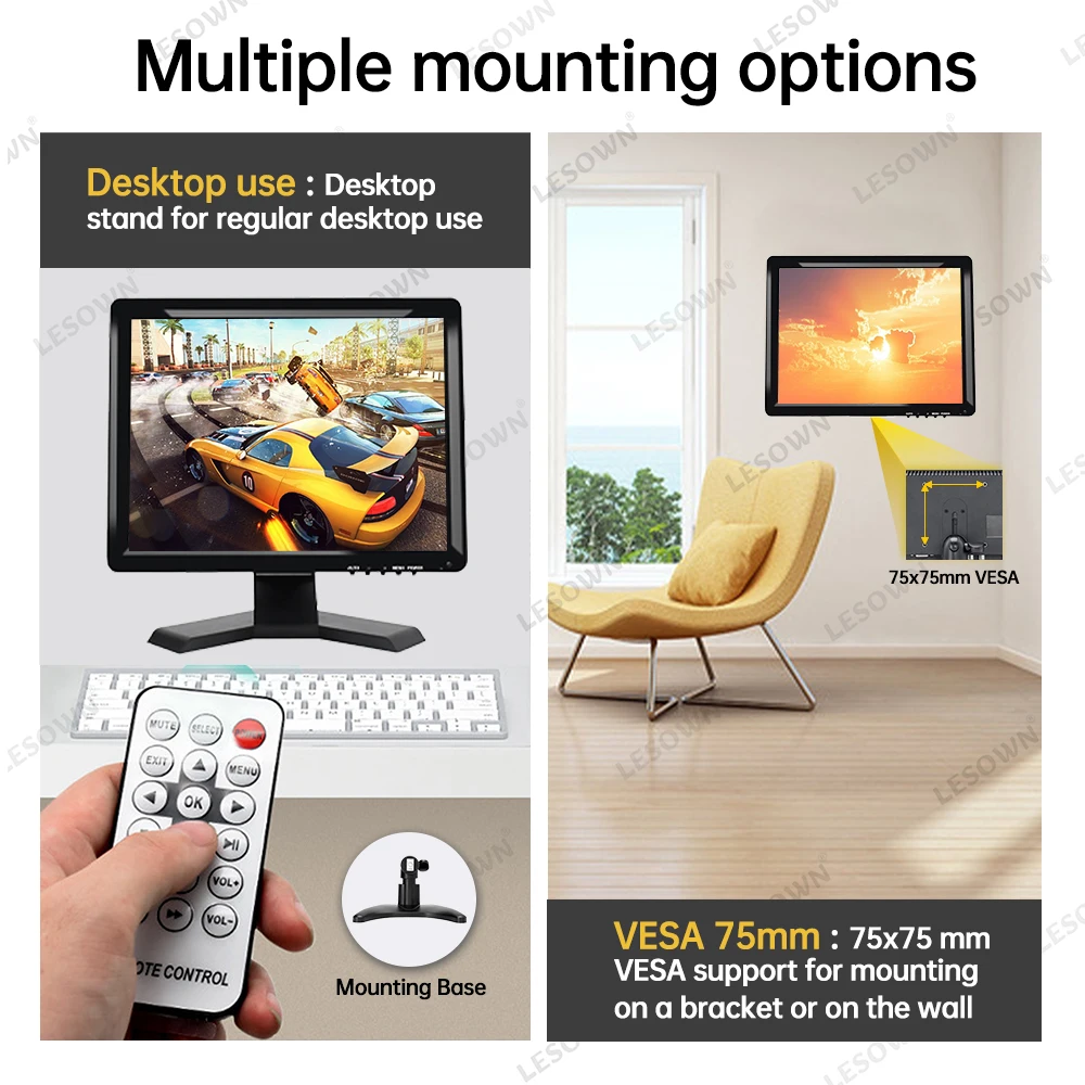 LESOWN-Monitor VGA CCTV de 19 pulgadas, 1280x1024, alta resolución, 4:3, pantalla ancha IPS, pantalla táctil USB con altavoces, carcasa de plástico