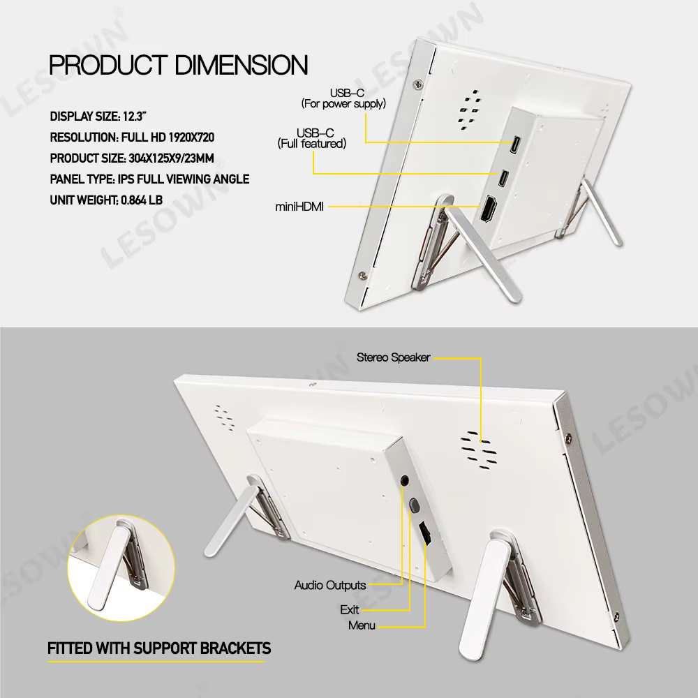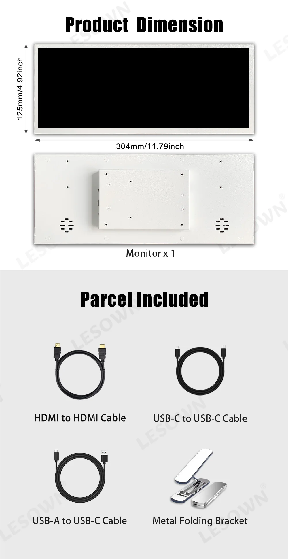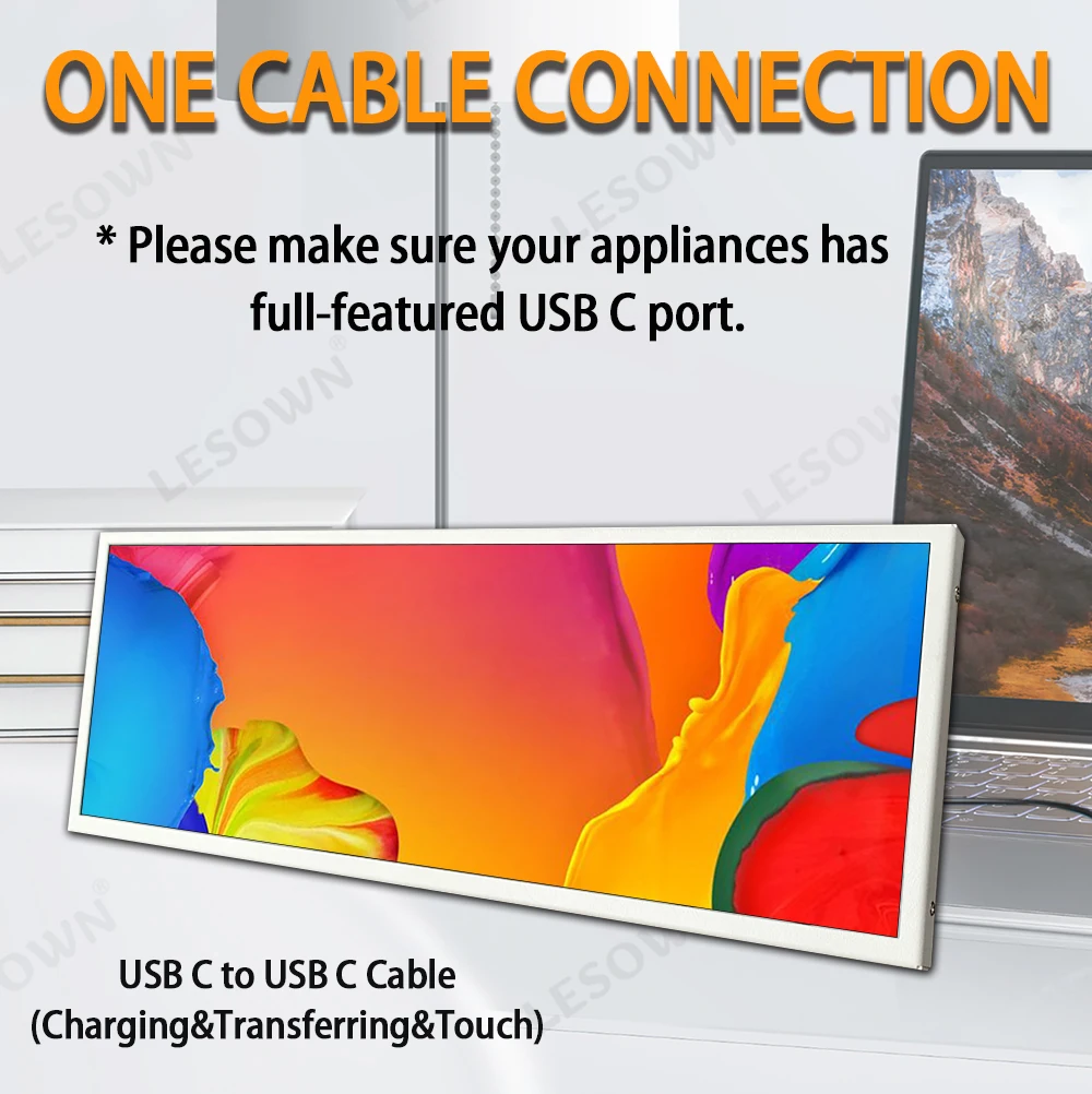 Comprar LESOWN pantalla de barra estirada de 12,3 pulgadas 1920x720 IPS LCD Monitor portátil Raspberry Pi pantalla secundaria para TV Box cámaras portátil