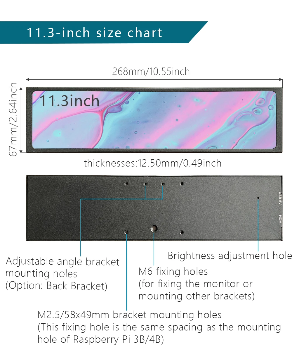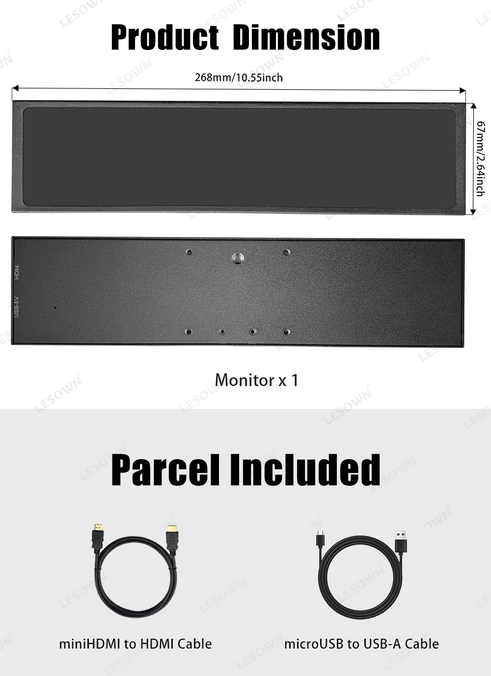 Comprar LESOWN pantalla IPS de 11,3 pulgadas Monitor portátil barra larga HDMI alimentado por USB 500Nits 1920x440 tira estirada ordenador pantalla pequeña