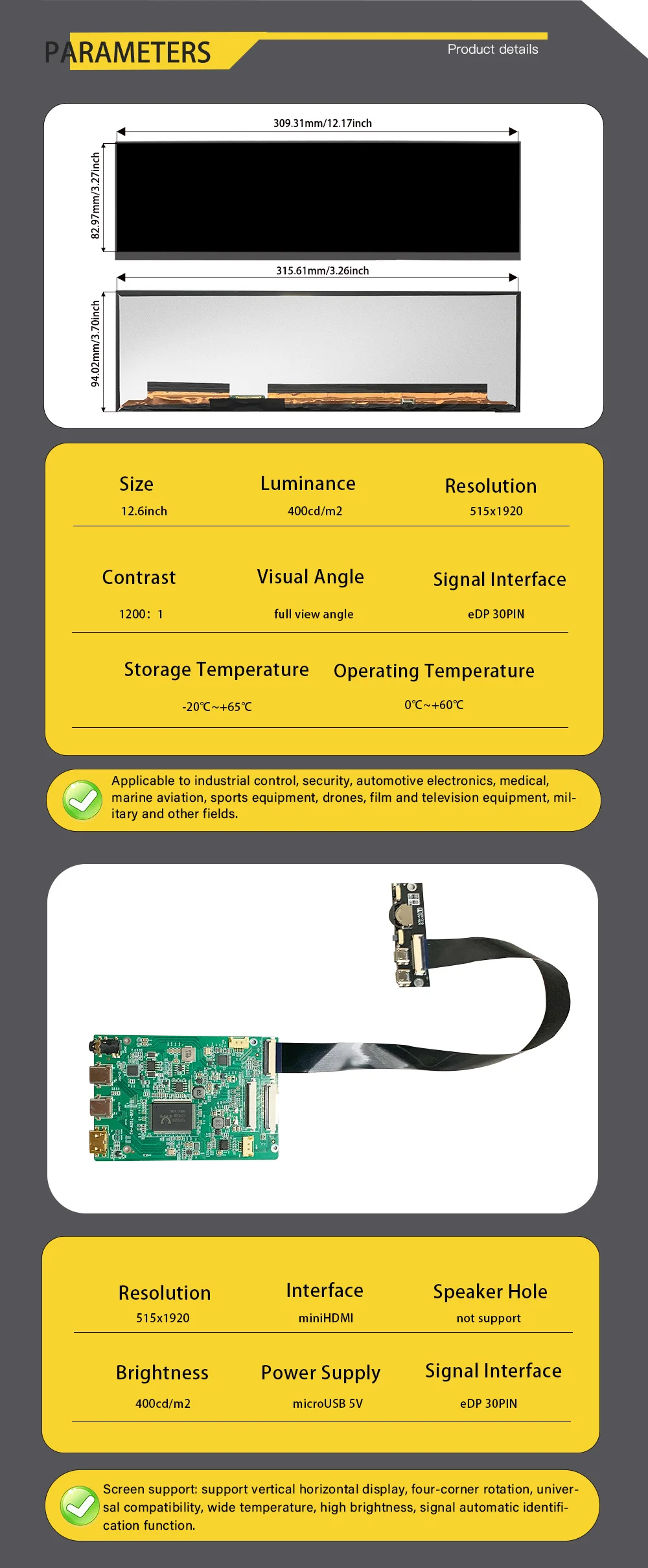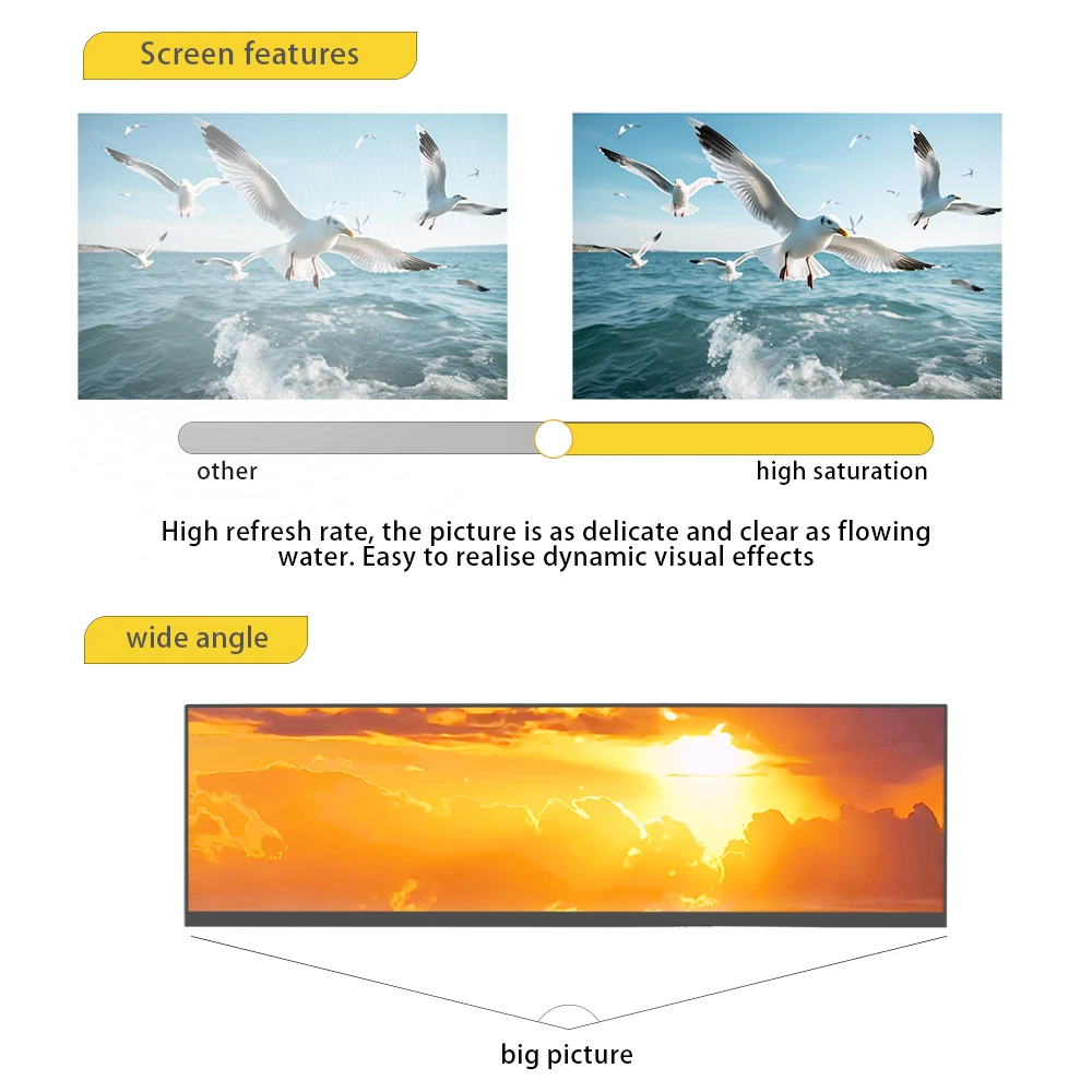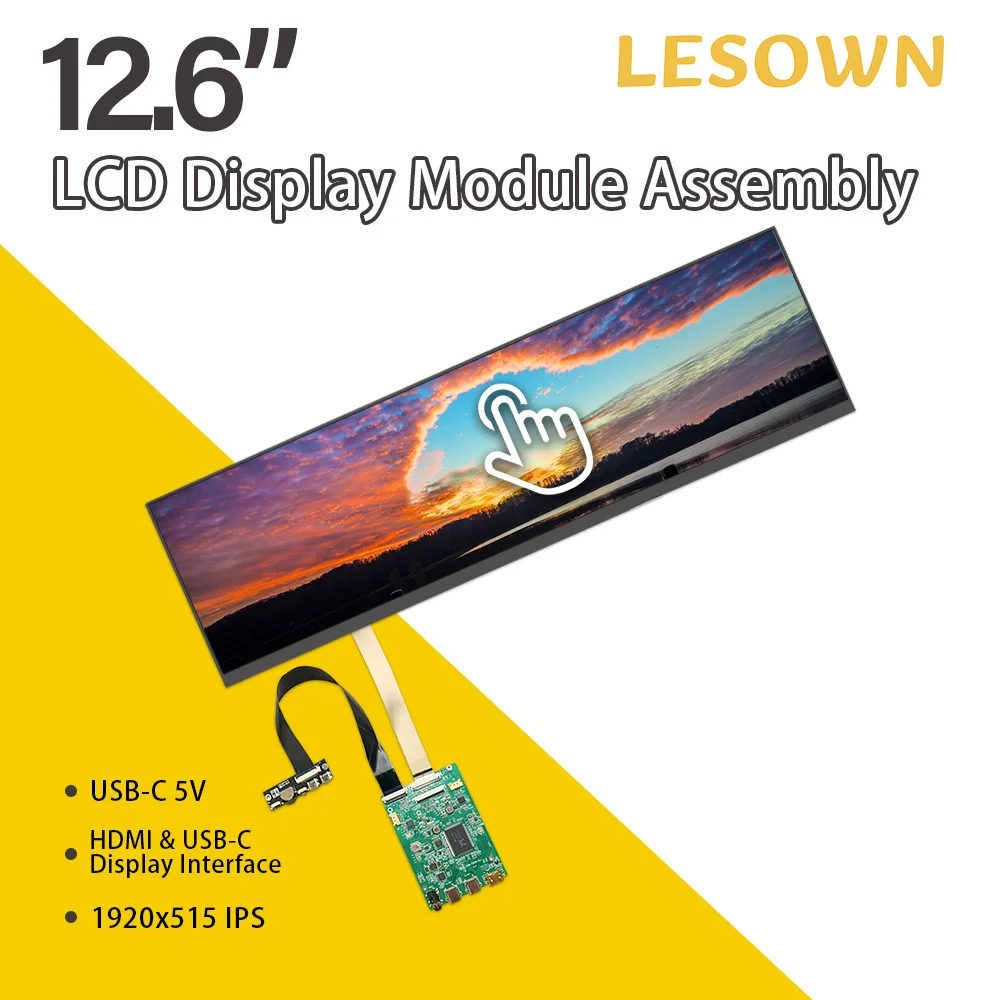 Comprar LESOWN-pantalla LCD portátil de 12,6 pulgadas, módulo de pantalla tipo barra táctil IPS para Monitor auxiliar de PC, 1920x515
