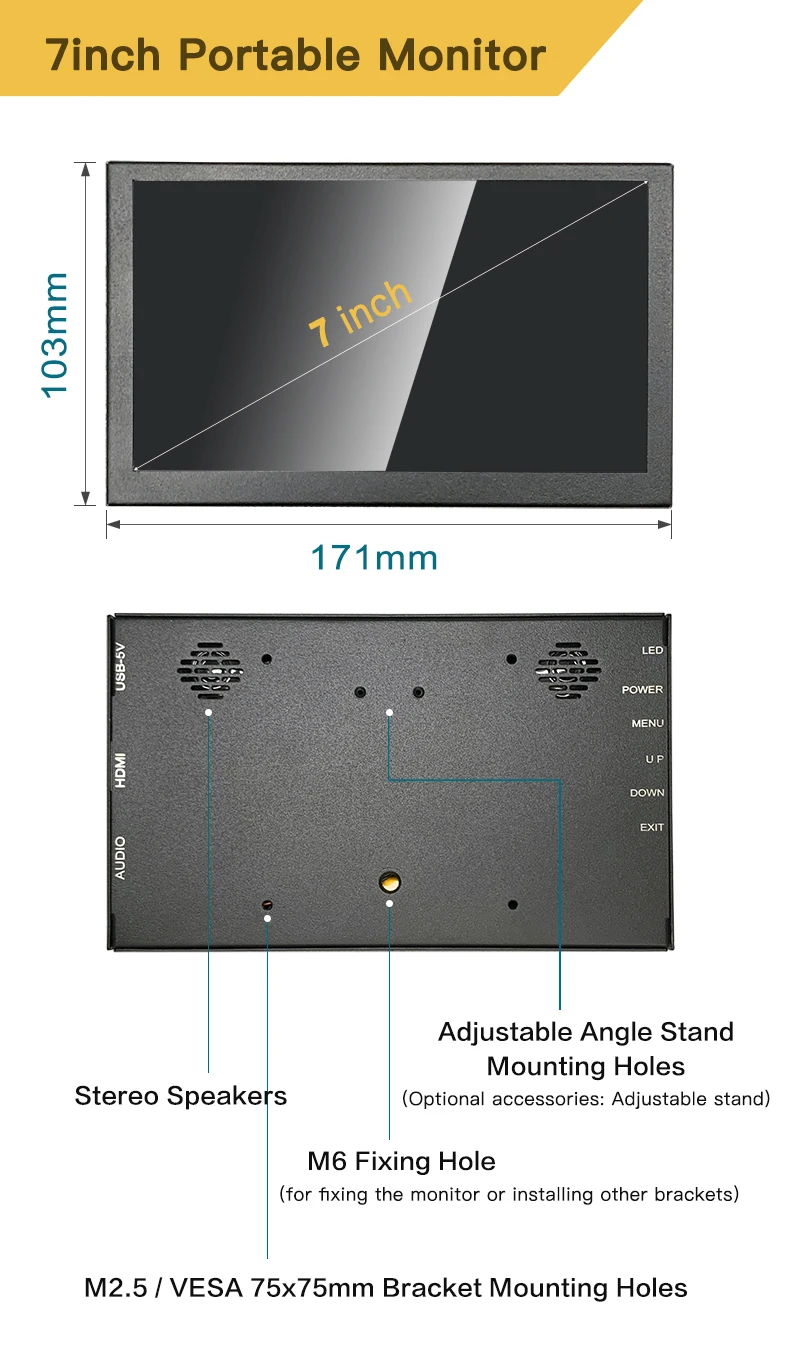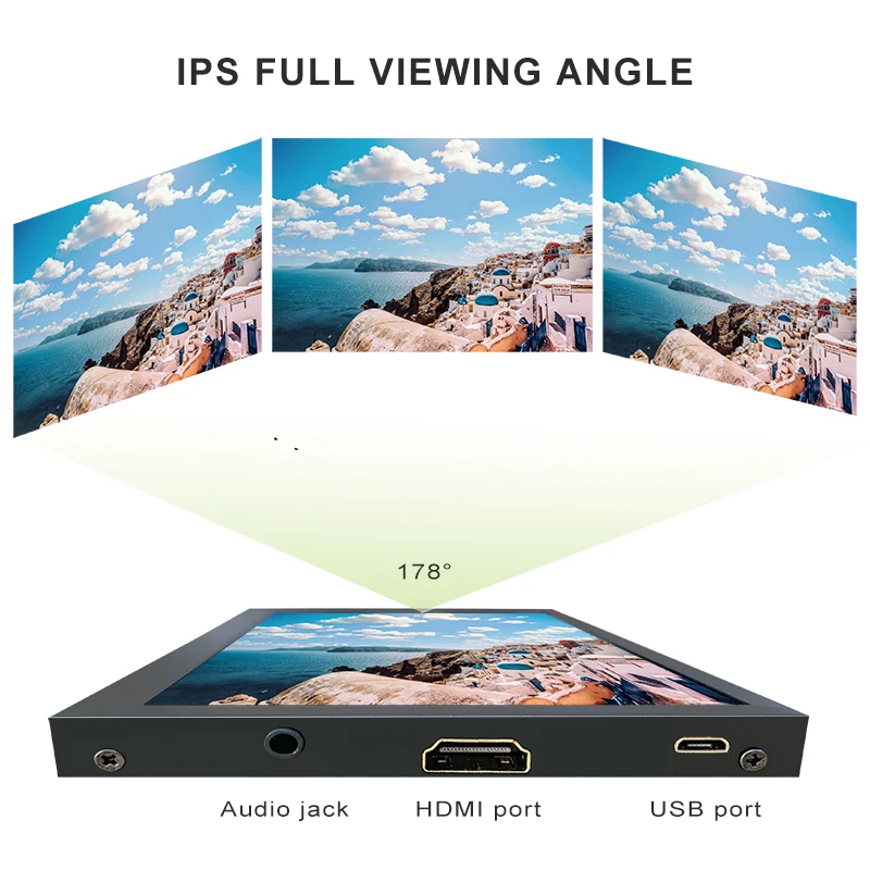 【Excelente color con panel IPS HD】Con panel IPS HD, este monitor portátil de 7 pulgadas presenta horizontal y vertical 178° Ángulo de visión completo y colores precisos, que muestran colores y contraste más vivos que los monitores VA y TN.La resolución de la pantalla táctil es 1024*600.
