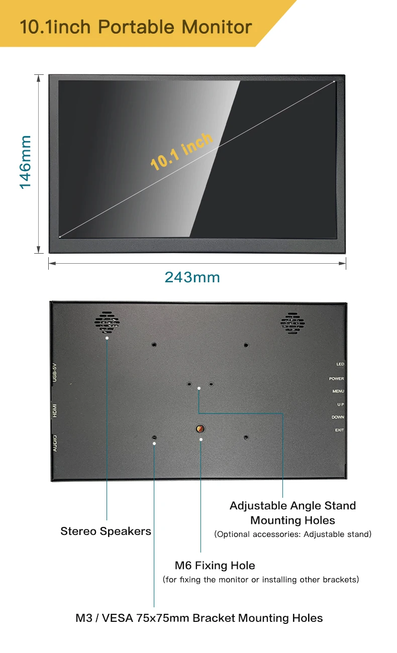 【Altavoces duales incorporados】- Diseñado con dos altavoces integrados y conector de audio, este monitor portátil de 7 pulgadas combina un rendimiento de pantalla increíble con sonido estéreo para una experiencia multimedia inmersiva.Gracias a los dos altavoces integrados, no necesita un altavoz externo cuando trabaja en un proyecto Pi.
