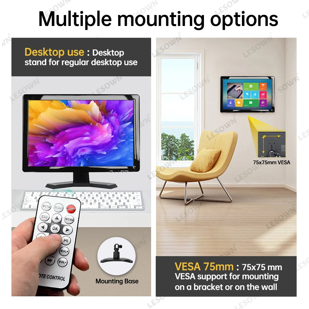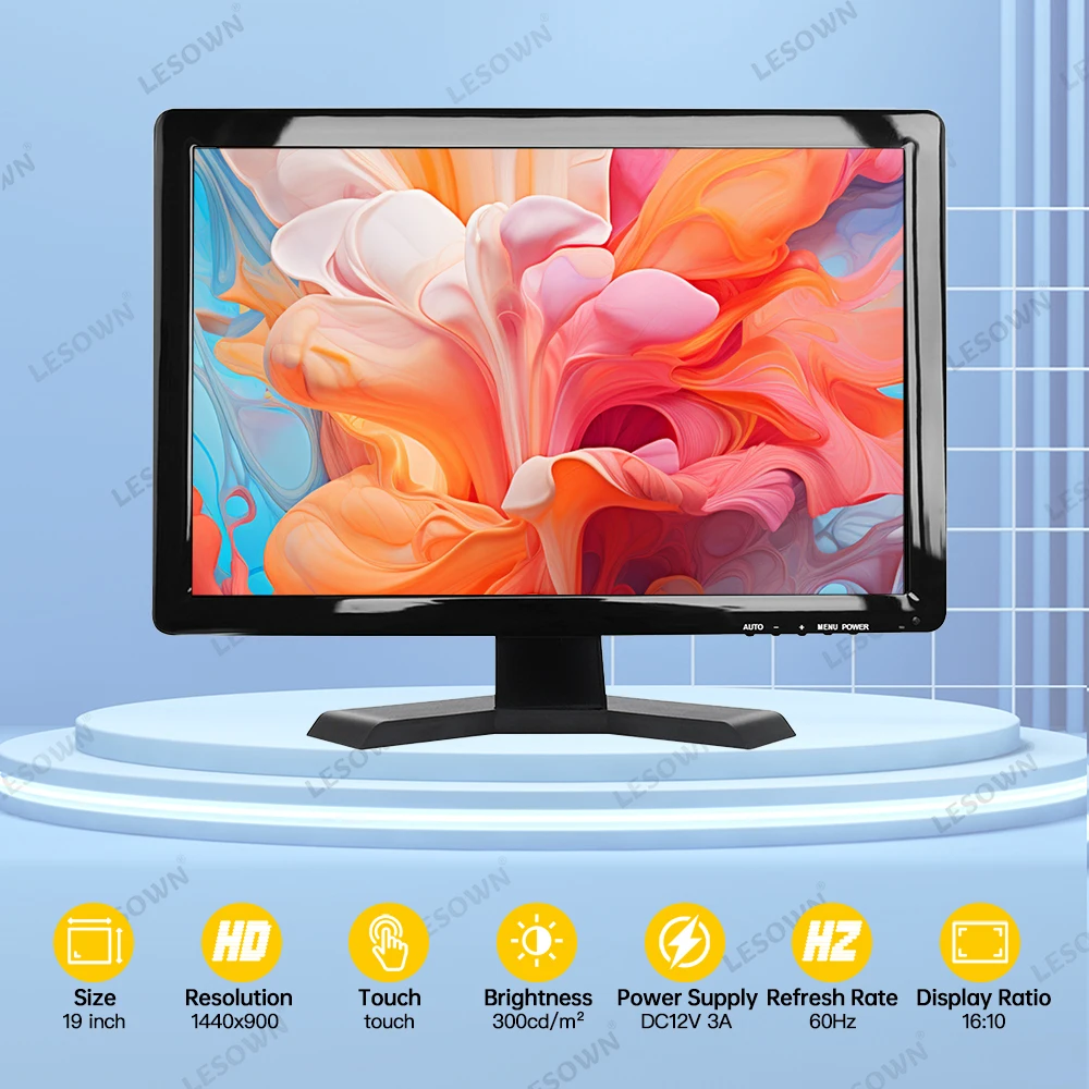 Comprar LESOWN-pantalla táctil LCD de 19 pulgadas, Monitor 16:10 VESA, interfaz VGA montable FHD 1440x900 IPS, pantalla secundaria para escritorio