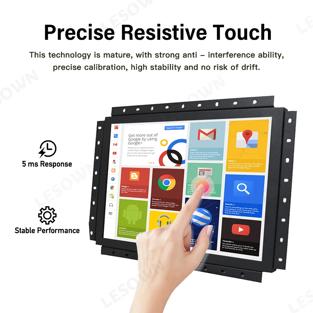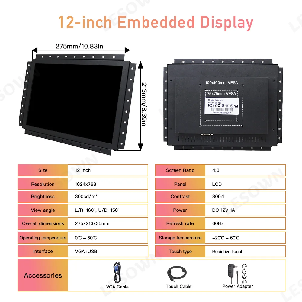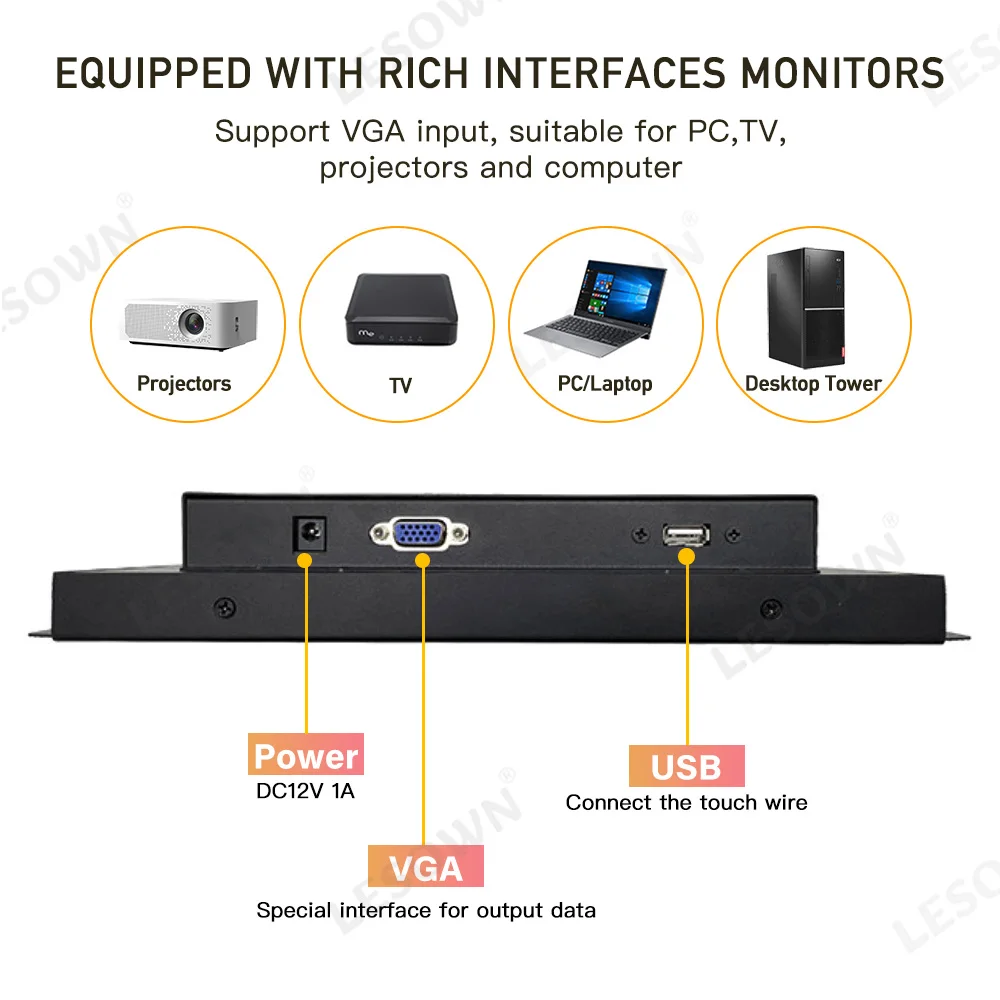 LESOWN pequeño Monitor de pantalla táctil resistivo de 12 "1024x768 4:3 VGA/USB pantalla integrada de montaje en Panel para CCTV Raspberry Pi