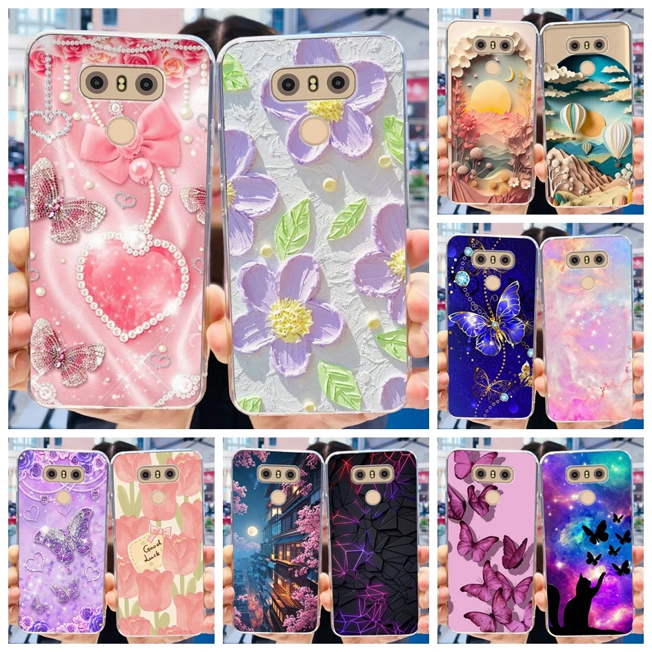 Para LG G6 Plus funda LGM-G600K fundas de teléfono Popular flor suave silicona transparente carcasa protectora para LG G6 G 6 LG6 LGG6 + contraportada