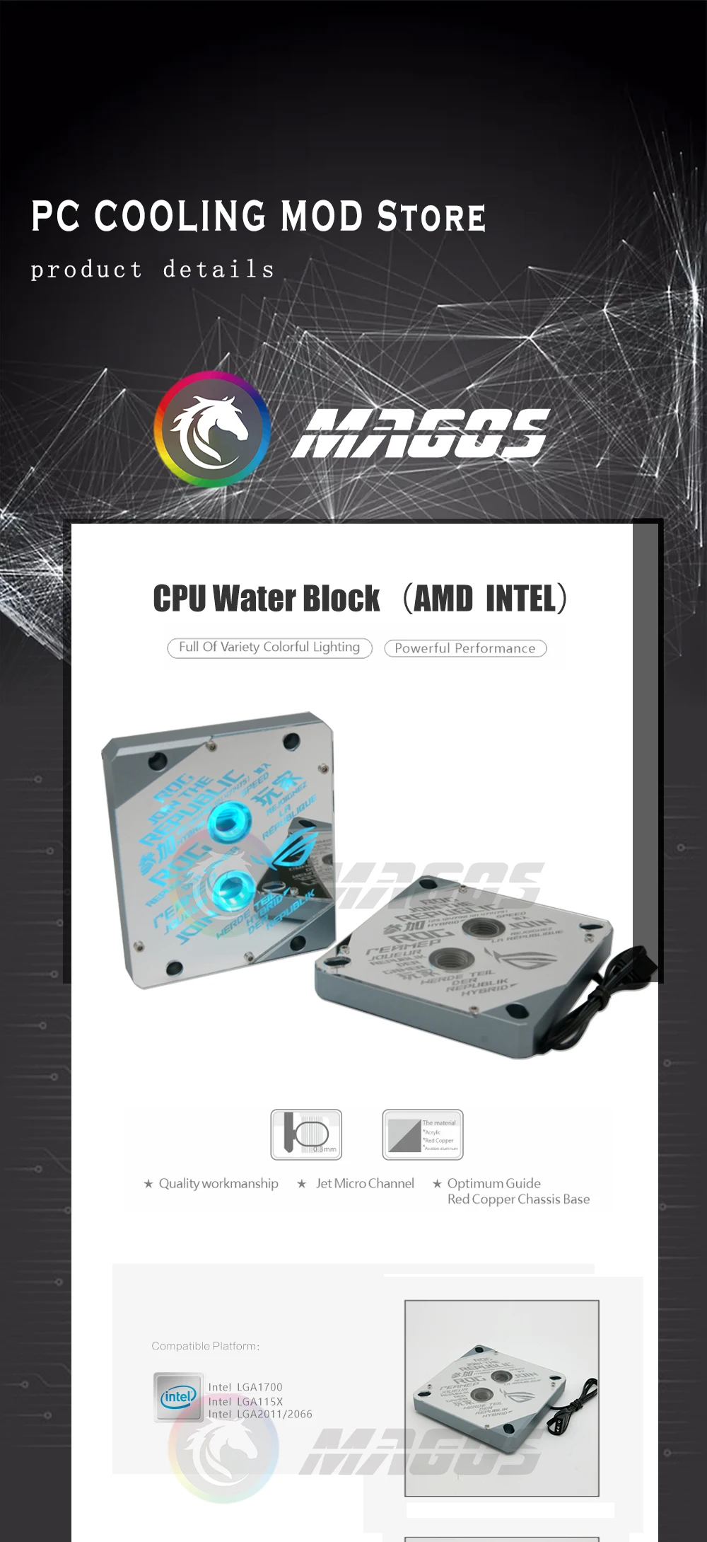 Comprar LGA1700 CPU Waterblock AM5 Watercooler Mirror ROG Logo Design 5V ARGB Gen. 12/13th Proccessor