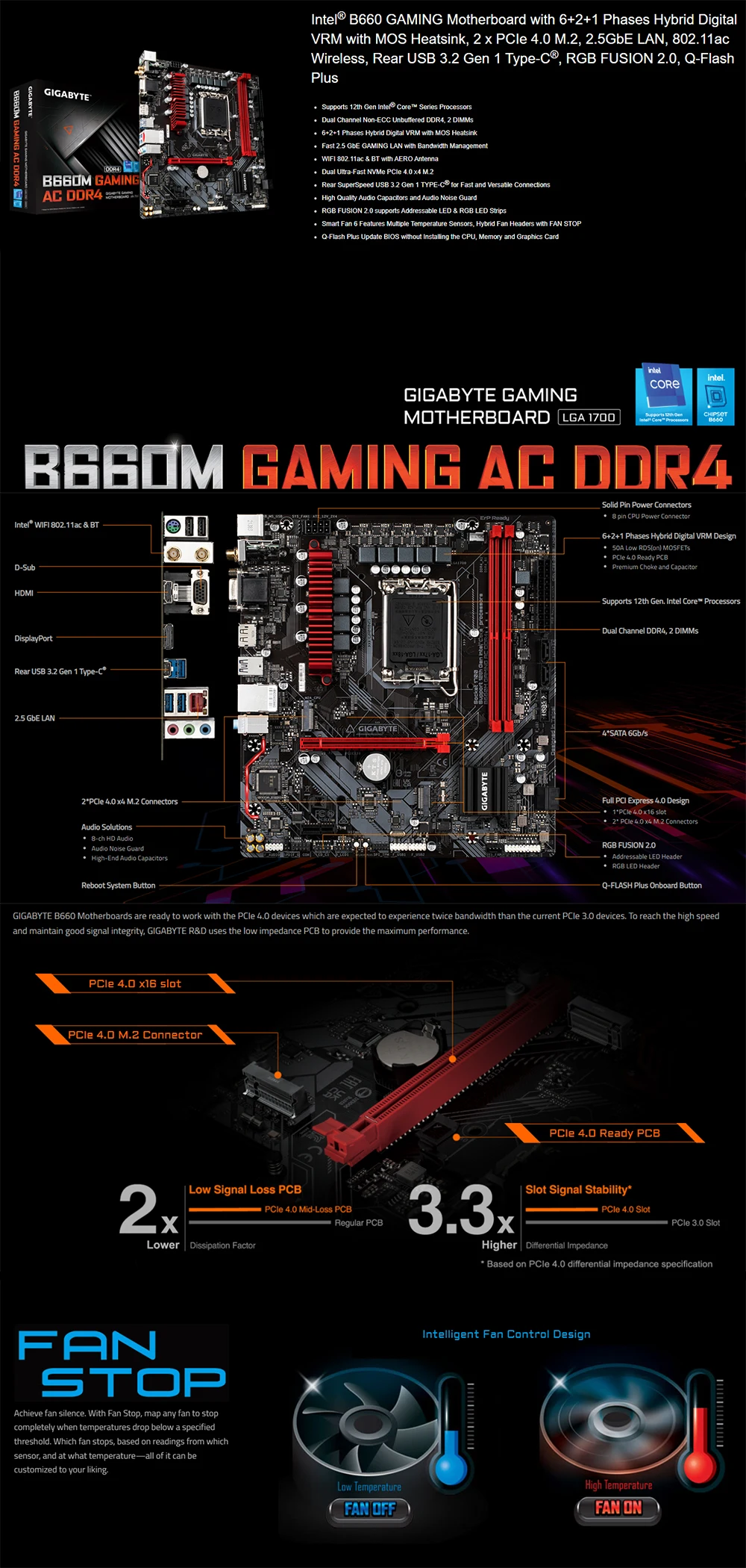 Comprar LGA1700 Gigabyte B660M GAMING AC DDR4 placa base soporta 12 generación Intel CPU 5333(O.C.) 64G PCI-E 4,0 Game New Mainboard