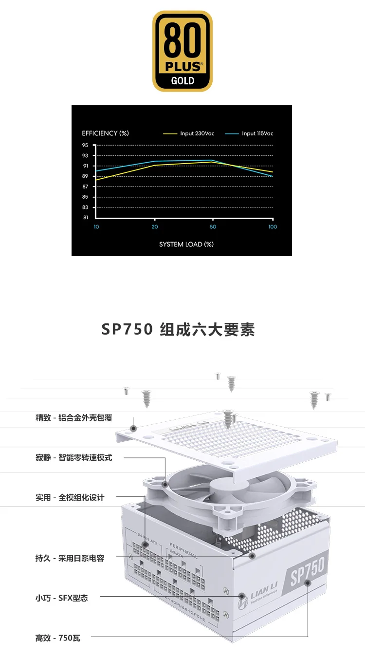 Comprar LIAN LI-fuente de alimentación de 750W, módulo completo de medalla dorada ITX, SFX, PSU, para ordenador, Mini carcasa ITX, SP750