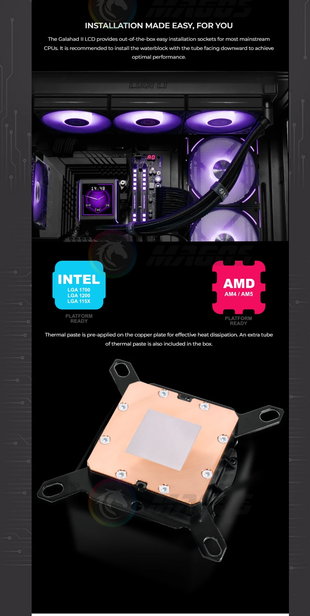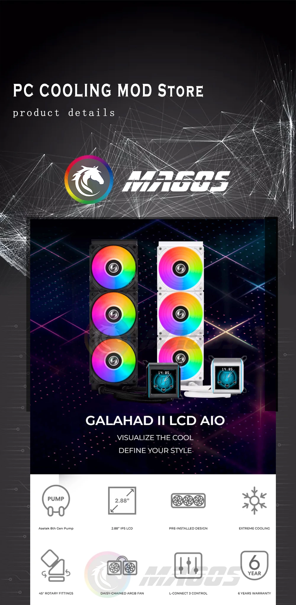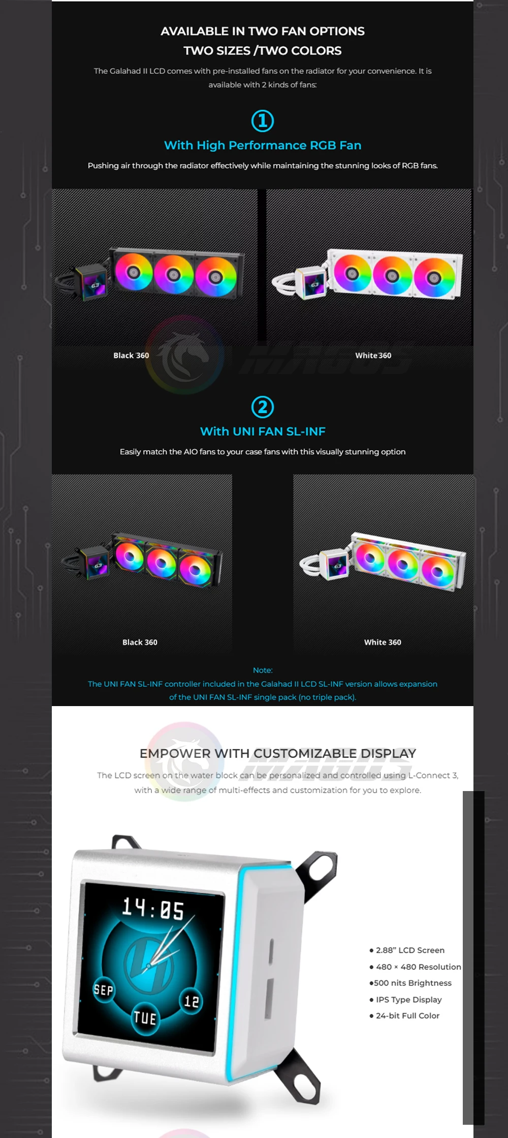 Comprar Lian Li GALAHAD II-enfriador de agua para CPU LCD 360, pantalla IPS de 2,88 pulgadas, refrigeración líquida ARGB/SL-INF, edición de ventilador opcional, negro/blanco