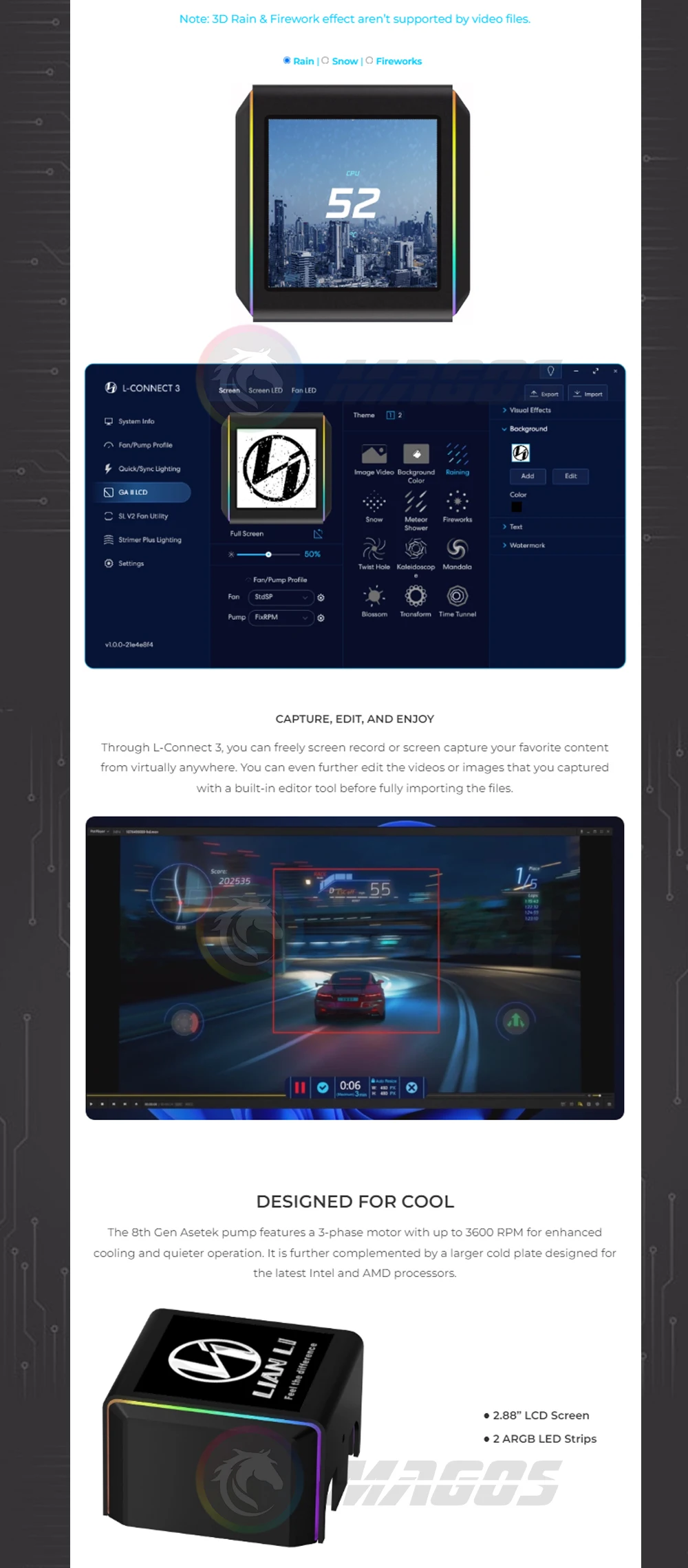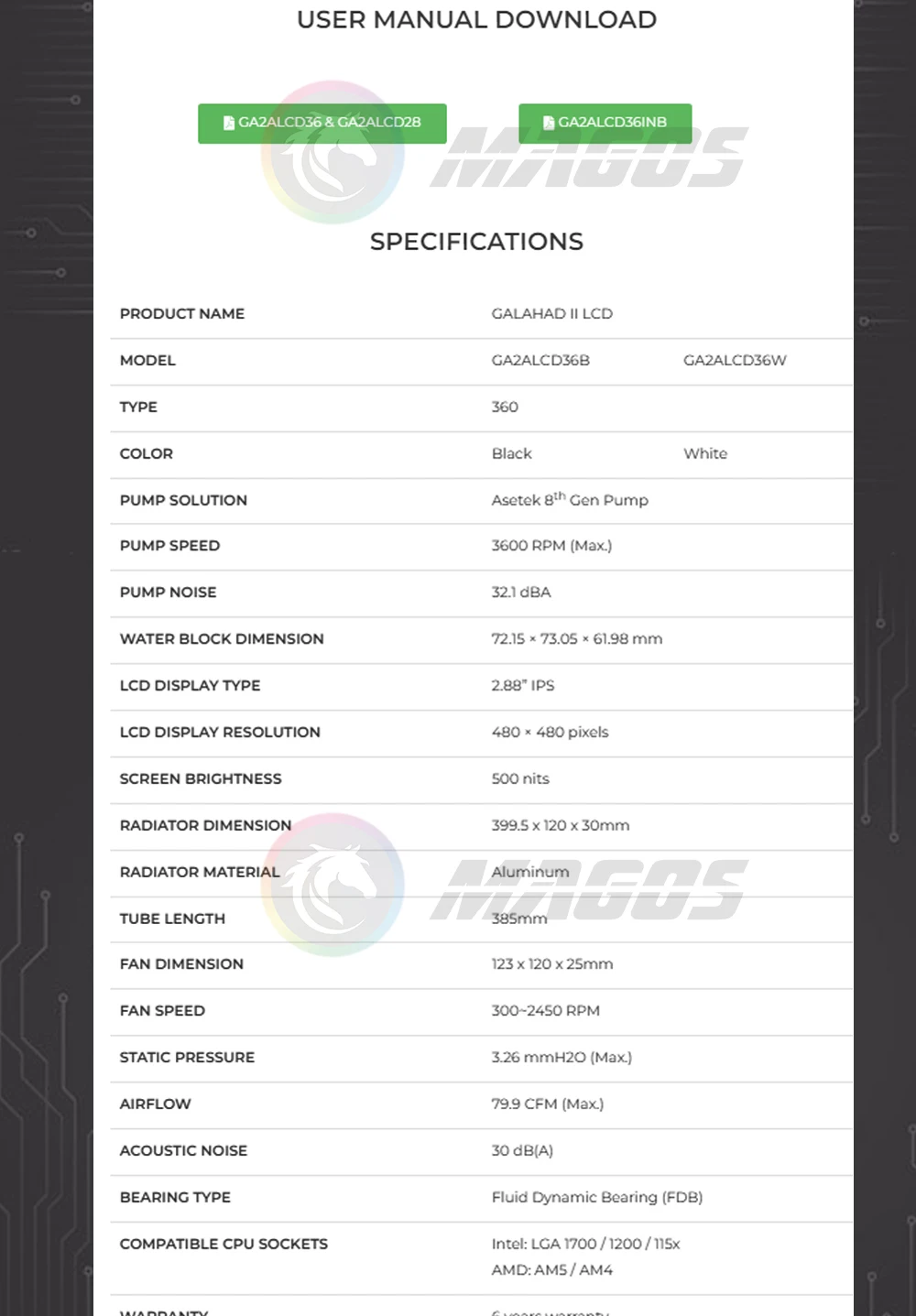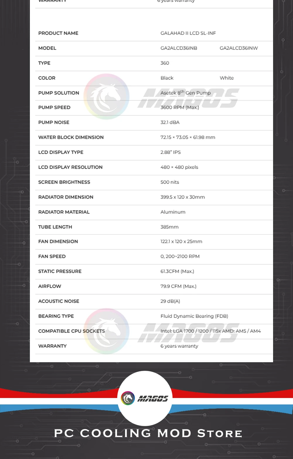 Comprar Lian Li GALAHAD II-enfriador de agua para CPU LCD 360, pantalla IPS de 2,88 pulgadas, refrigeración líquida ARGB/SL-INF, edición de ventilador opcional, negro/blanco