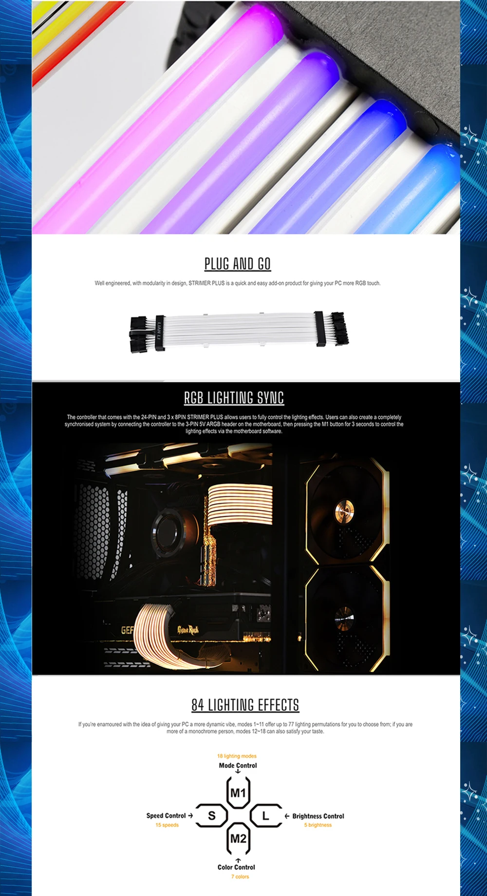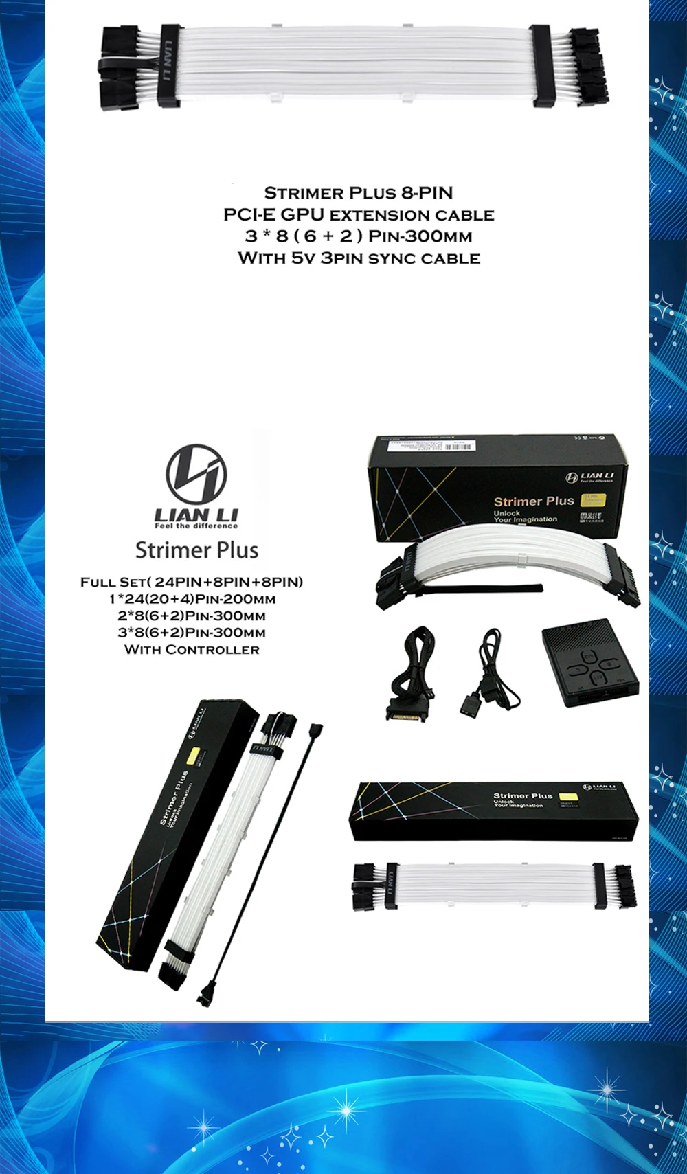 Comprar Lian Li Strimer Plus RGB Cable de extensión direccionable ATX24Pin,GPU Triple/Dual 8Pin,Argb Neon PSU Riser Cable PC Cabinet decoration