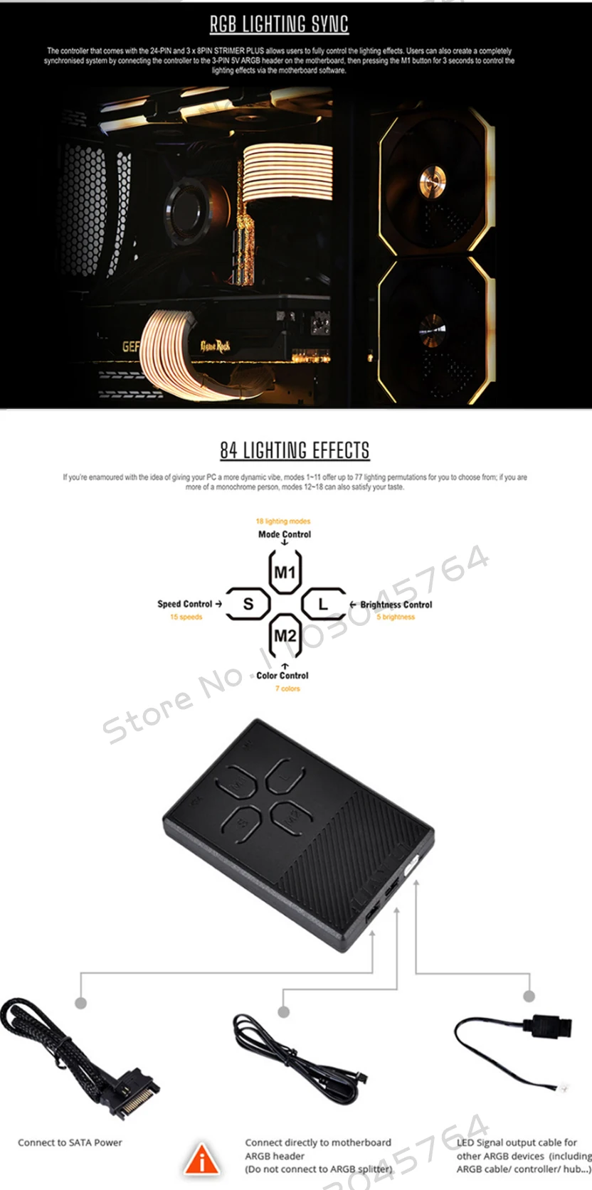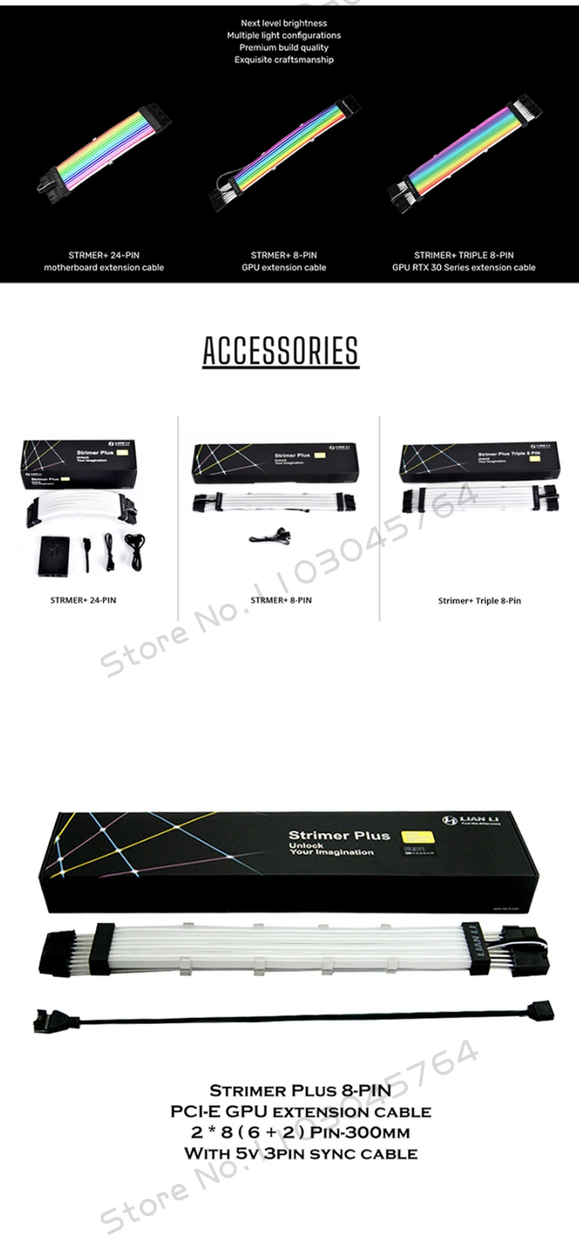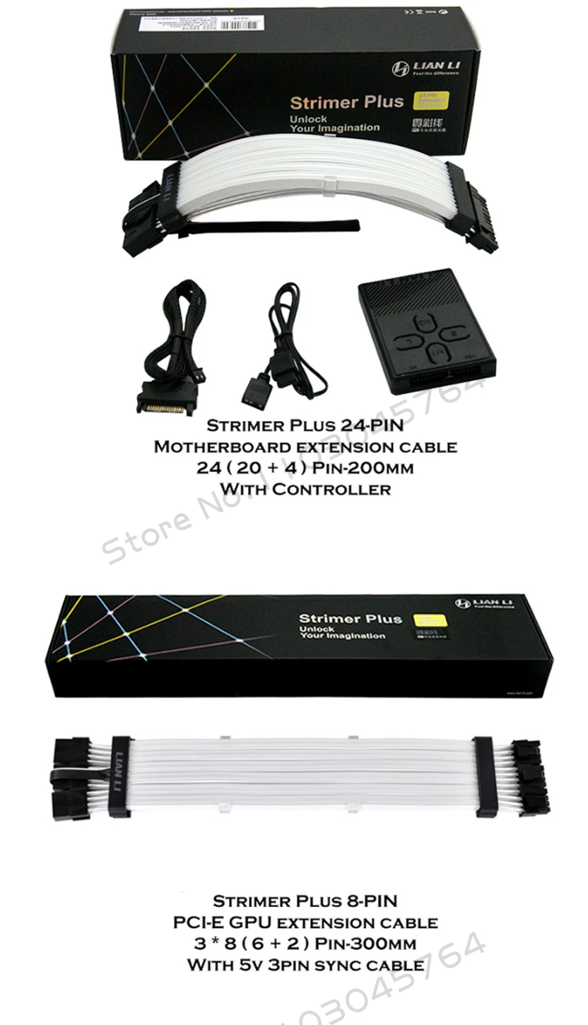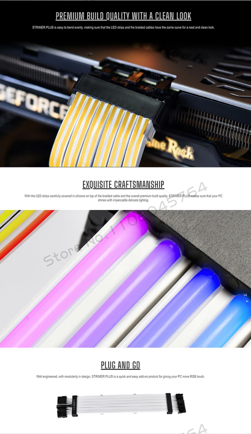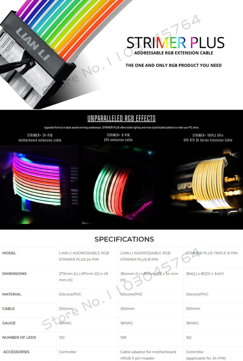 Comprar Lian Li Strimer Plus V1 Cable de extensión direccionable RGB 24 pines ATX Cable de alimentación GPU Triple 8 pines guía de luz de arco iris de silicona