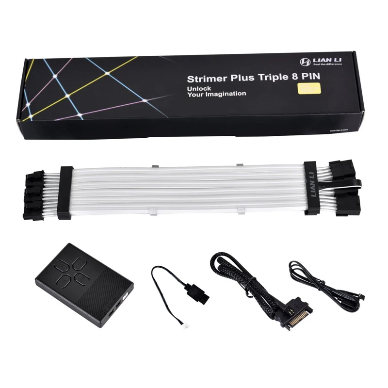 Lian Li Strimer Plus V1 Cable de extensión direccionable RGB 24 pines ATX Cable de alimentación GPU Triple 8 pines guía de luz de arco iris de silicona