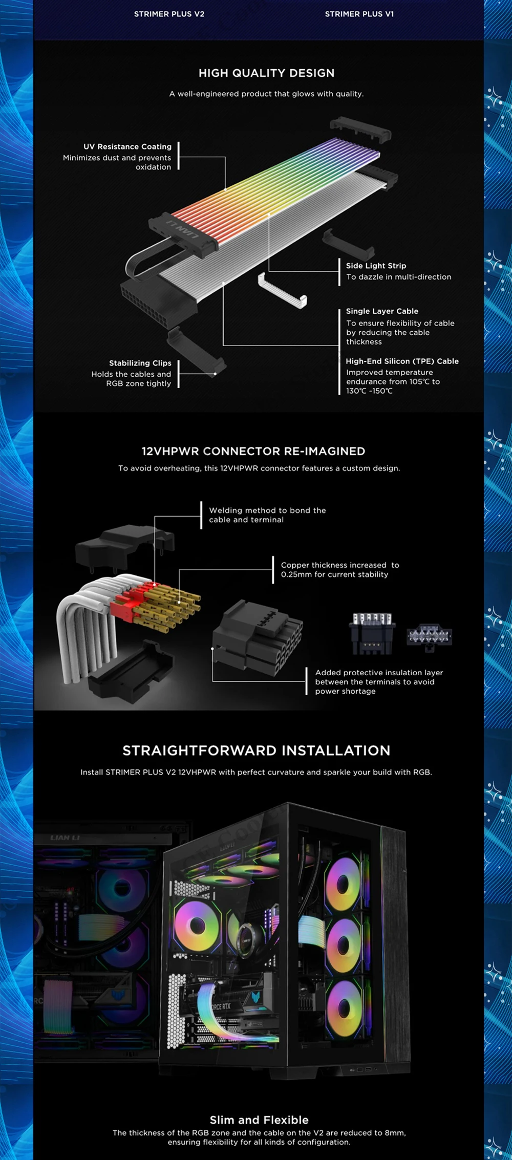 Comprar Lian-li Strimer Plus V2 12VHPWR ATX3.0 PSU GPU Cable de extensión compatible con tarjeta gráfica RTX 40s 450W/600W