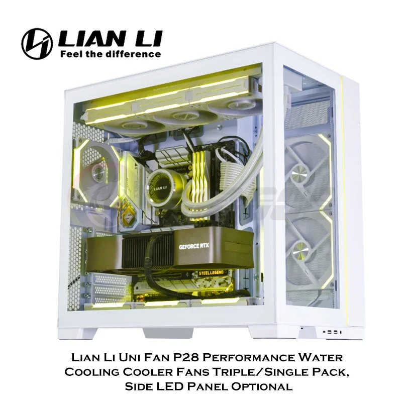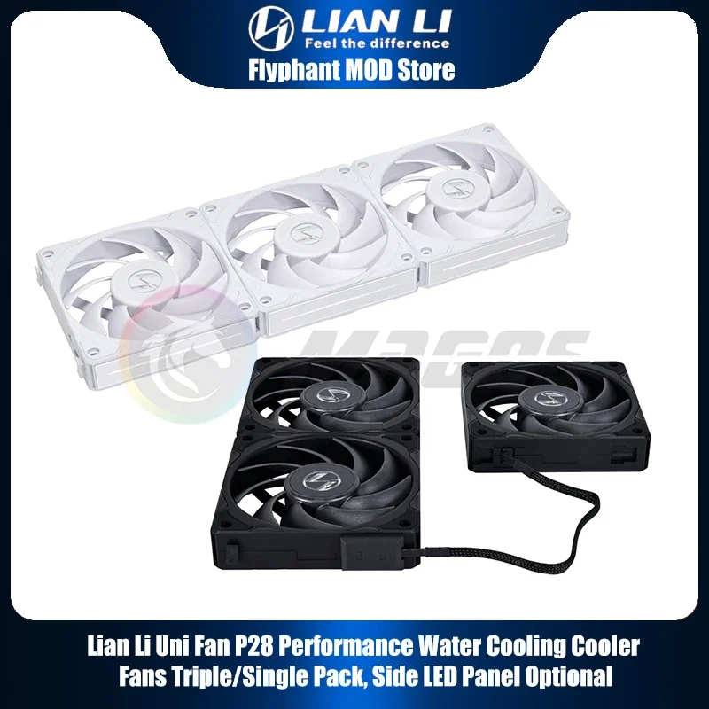 Comprar Lian Li Uni Fan P28 ventiladores enfriadores de agua de rendimiento paquete triple/único, panel LED lateral opcional