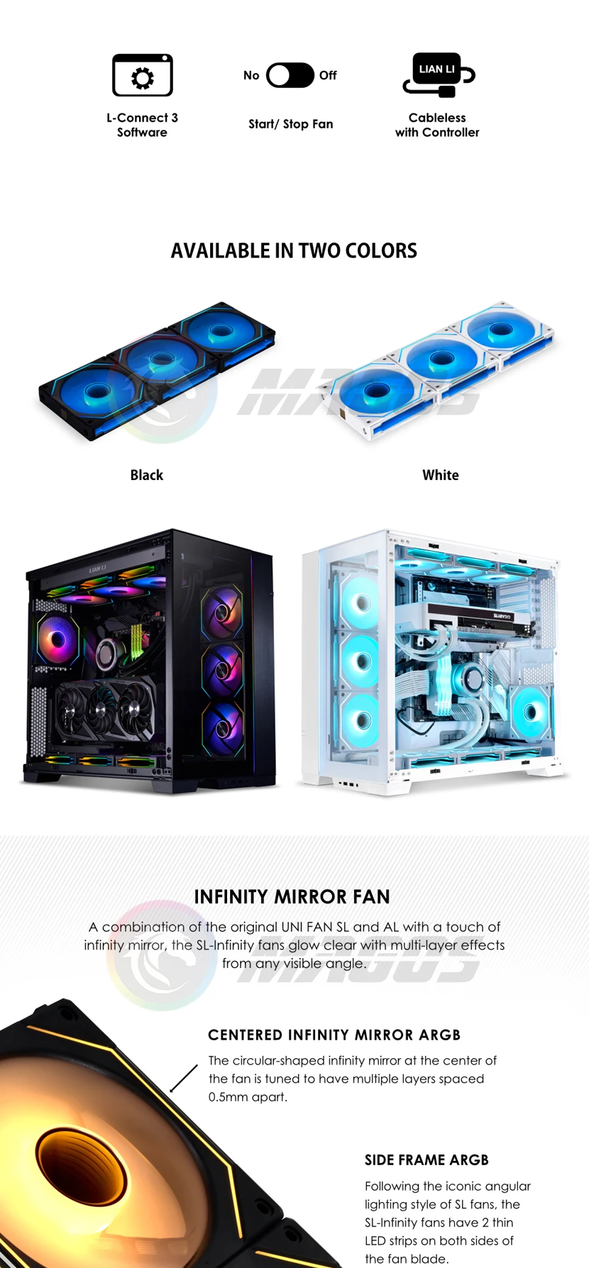 *VENTILADOR DE ESPEJO INFINITUD: una combinación del UNI FAN SL y AL original con un toque de espejo infinito, los ventiladores SL-Infinity brillan claramente con efectos multicapa desde cualquier ángulo visible.