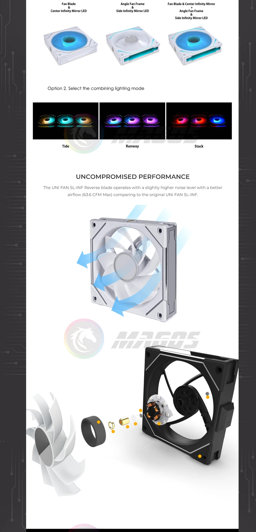 * VENTILADOR DE ESPEJO INFINITO: una combinación del UNI FAN SL y AL original con un toque de espejo infinito, los ventiladores SL-Infinity brillan claramente con efectos multicapa desde cualquier ángulo visible.